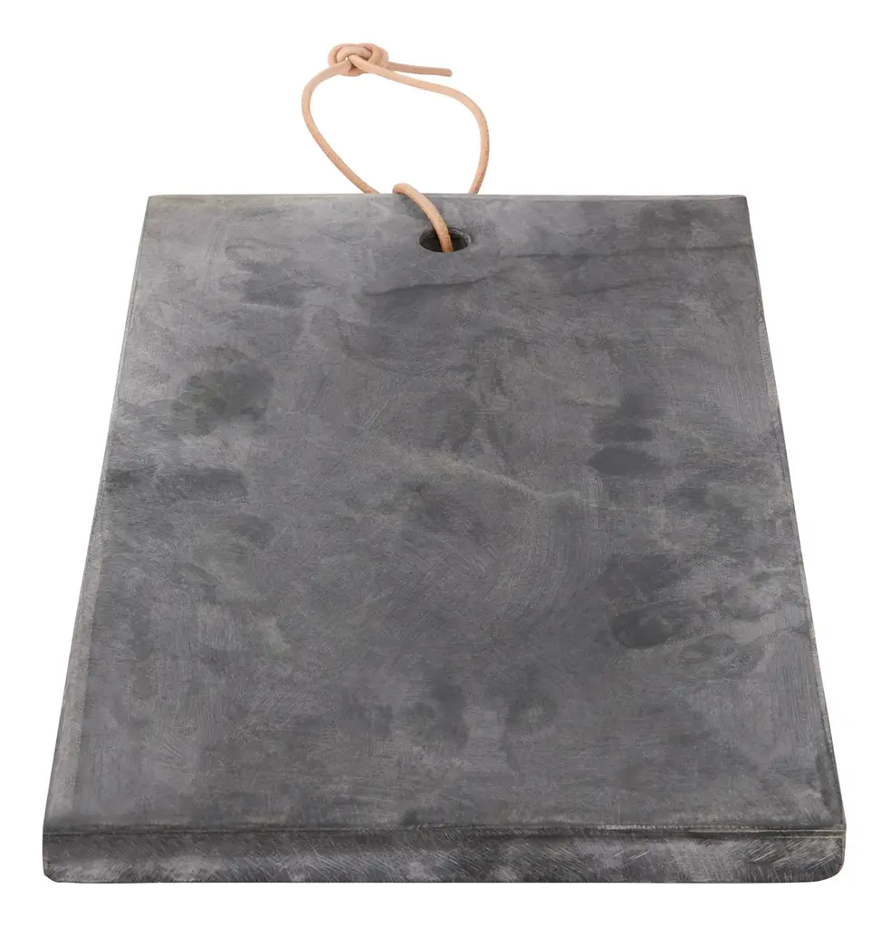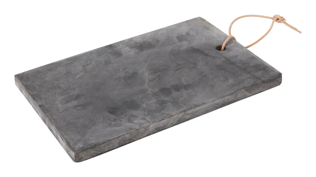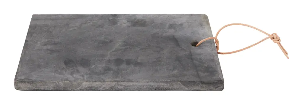 Plate your fare like a pro with our Slater Serveboard. Crafted from natural grey stone into a sleek, rectangular shape, this simple tray is perfect for creating restaurant-worthy displays of hors d’oeuvres, cheeses, sushi, a crusty loaf of homemade bread or whatever else you’re serving up. When not in use, it can also double as kitchen decor, whether you prop it up on the counter or hang it from its handsome leather hanging loop. Right at home in any serveware collection, its a great way to add a touch of texture to your next tablescape. •stone •leather hanging loop•food safe •hand wash only•each is unique; variations in color and organic characteristics of natural stone should be expected Dimensions •11.75"W x 7.25"D x .75"H