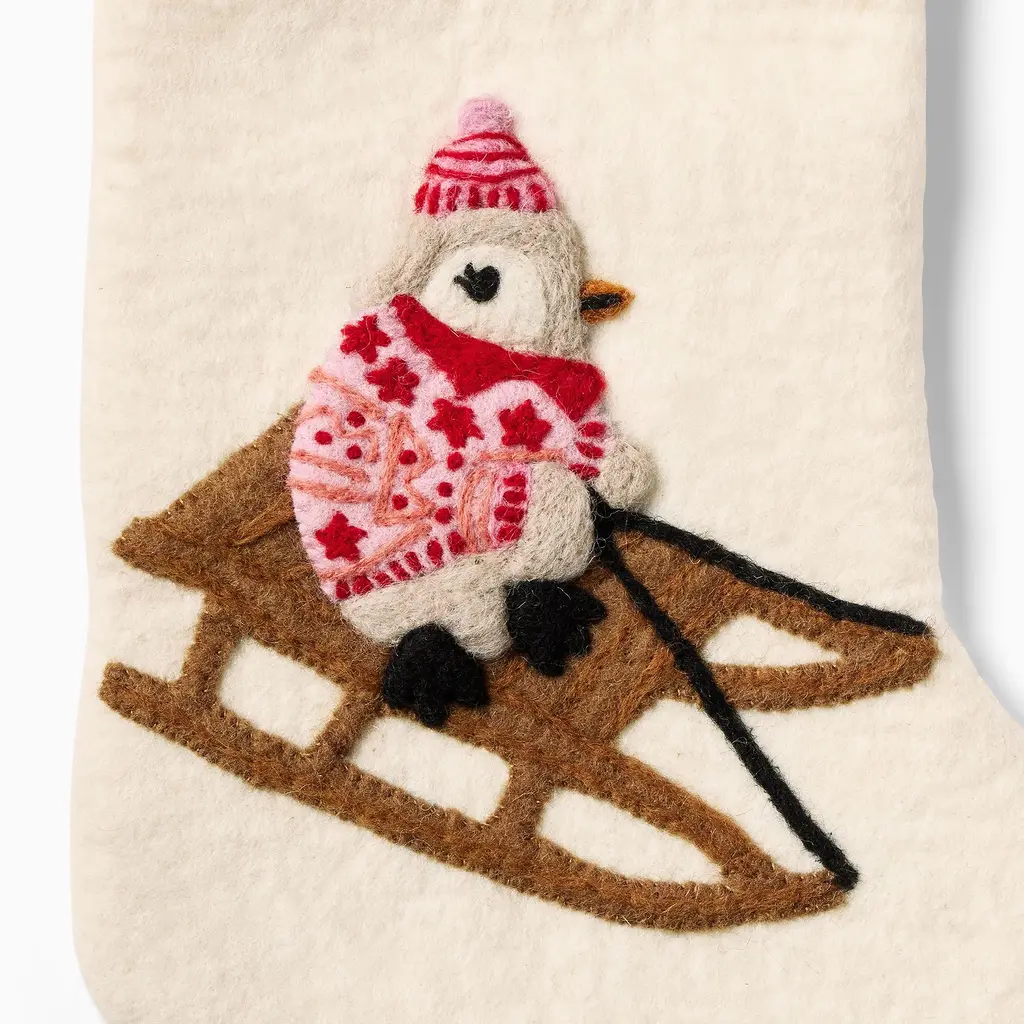 The adorable sledding penguin. Brings seasonal charm to a mantel or stair rail. Roomy enough to stash plenty of presents. Personalize this stocking to make it a family heirloom.