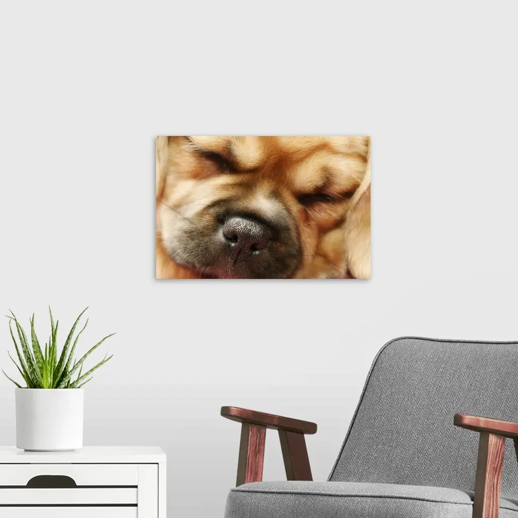 Sleeping Pugalier Puppy Close up wall art for home and office decor. Discover canvas art prints, photos, mural, big canvas art and framed wall art in GreatBigCanvas.com's varied collections.
