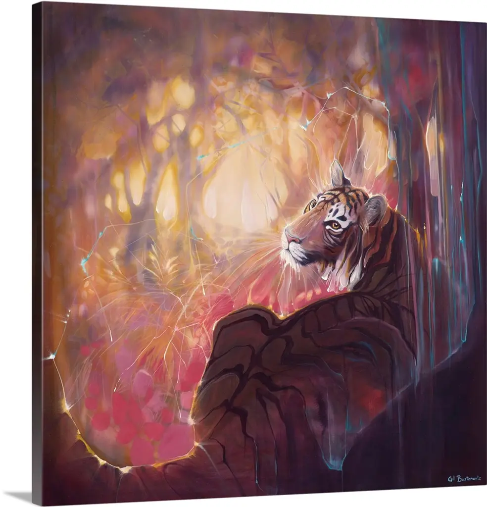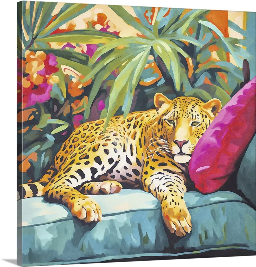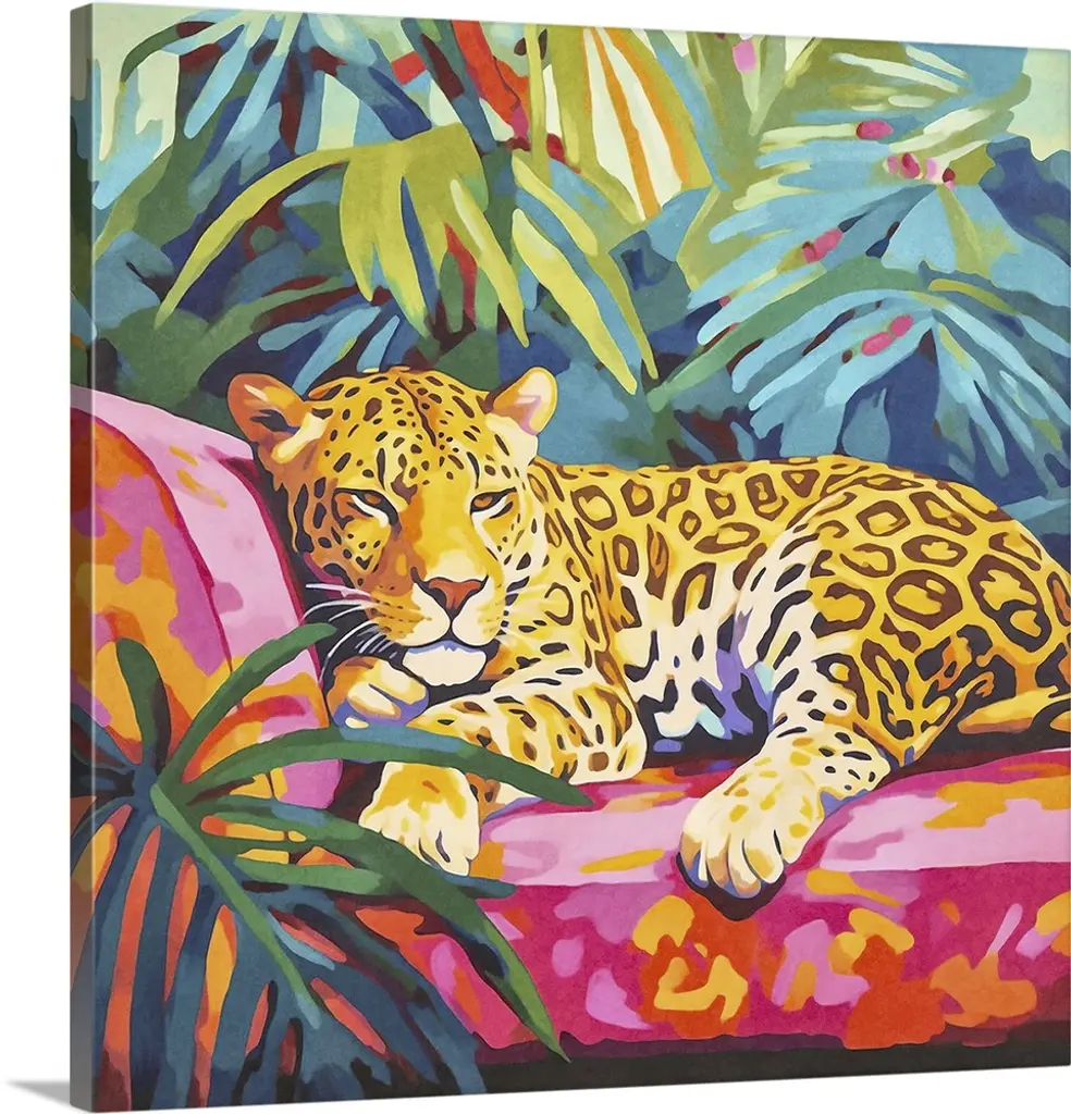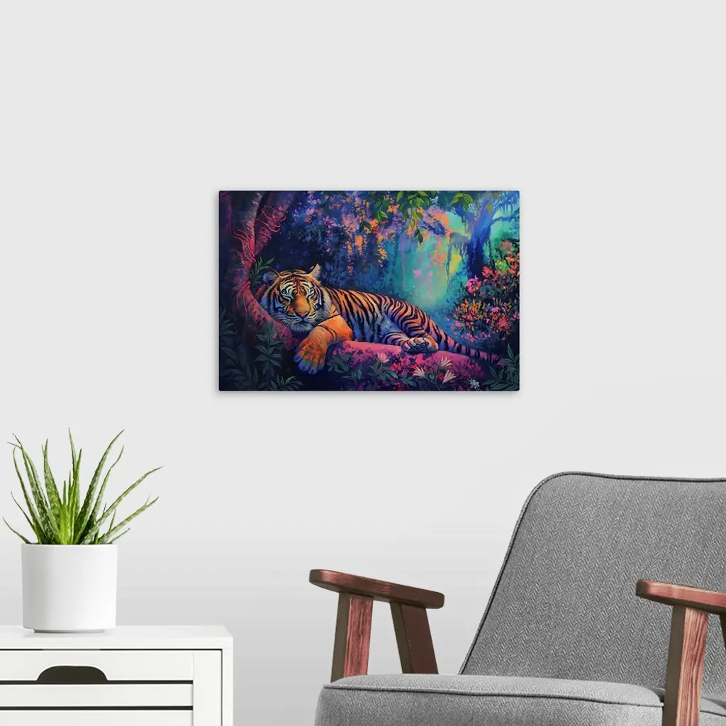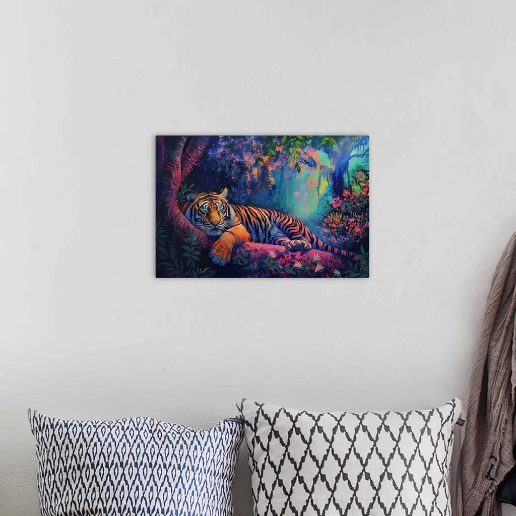 Sleeping Tiger On A Neon Jungle Tree wall art for home and office decor. Discover canvas art prints, photos, mural, big canvas art and framed wall art in GreatBigCanvas.com's varied collections.