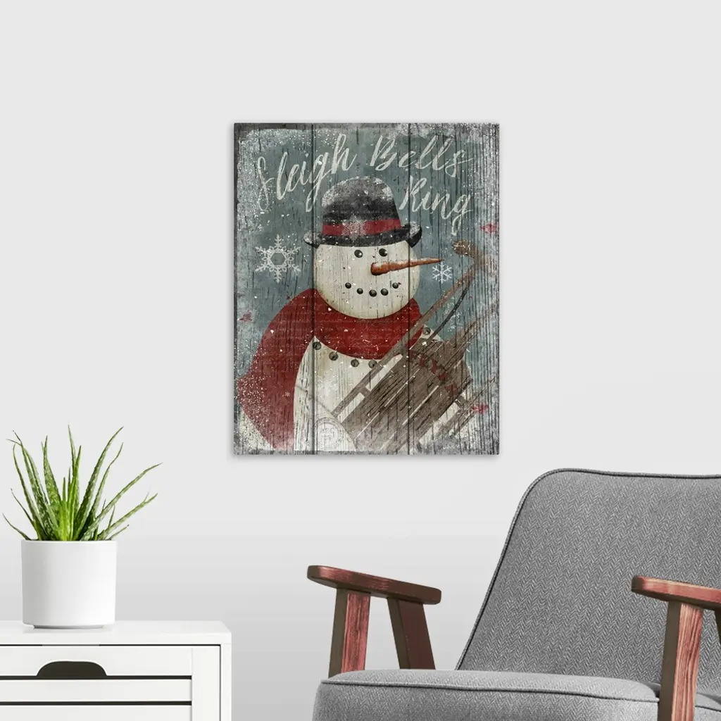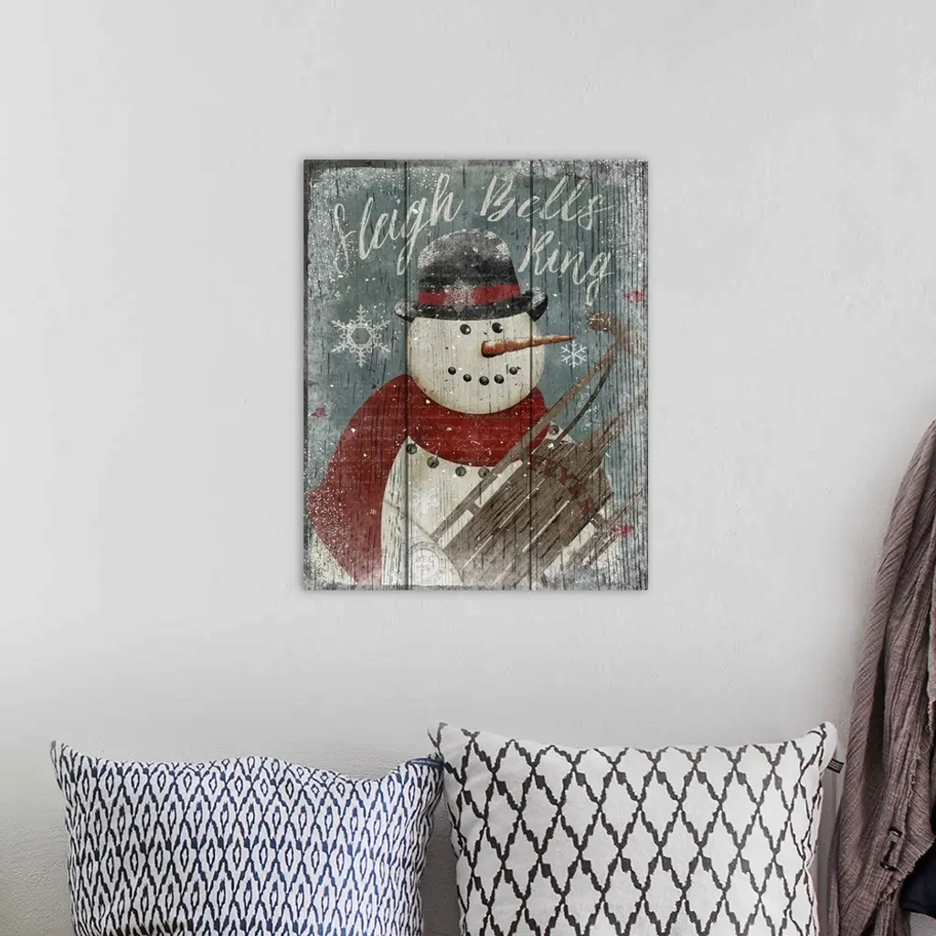 Sleigh Bells Ring Snowman wall art for home and office decor. Discover canvas art prints, photos, mural, big canvas art and framed wall art in GreatBigCanvas.com's varied collections.