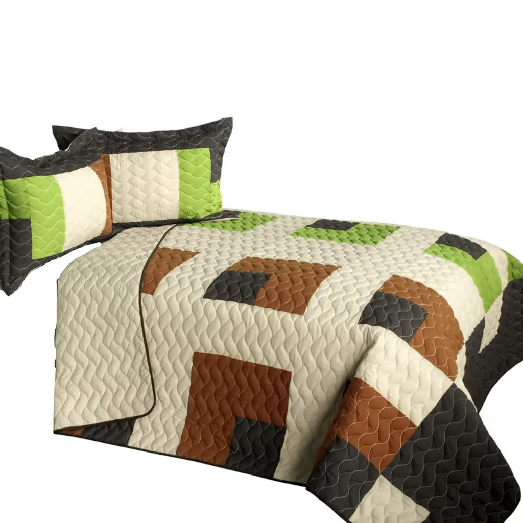 Slickblue 3Pc Quilt Set, Hand-stitched Patch Design, Full/queen, Reversible, 100% Tc Fabric, Brown