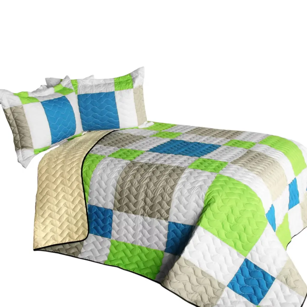 Transform your bedroom with the 3-Piece Vermicelli-Quilted Patchwork Quilt Set. This set includes one quilt and two quilted shams, all handmade with intricate vermicelli stitching that adds texture and style to your space. The set is available in five unique design options, giving you the flexibility to find the perfect match for your room. Crafted from 100% TC fabric, it offers both comfort and durability. Pre-washed and pre-shrunk, the quilt set is machine washable for easy maintenance, ensuring it stays looking fresh and cozy for years. Whether you're updating your bedroom or gifting it to someone special, this quilt set is designed to create a warm and inviting atmosphere.