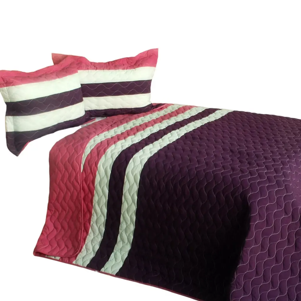 Slickblue Full/queen 3Pc Quilt Set, Handmade Vermicelli-quilted, Tc Fabric, Patchwork Design, Purple