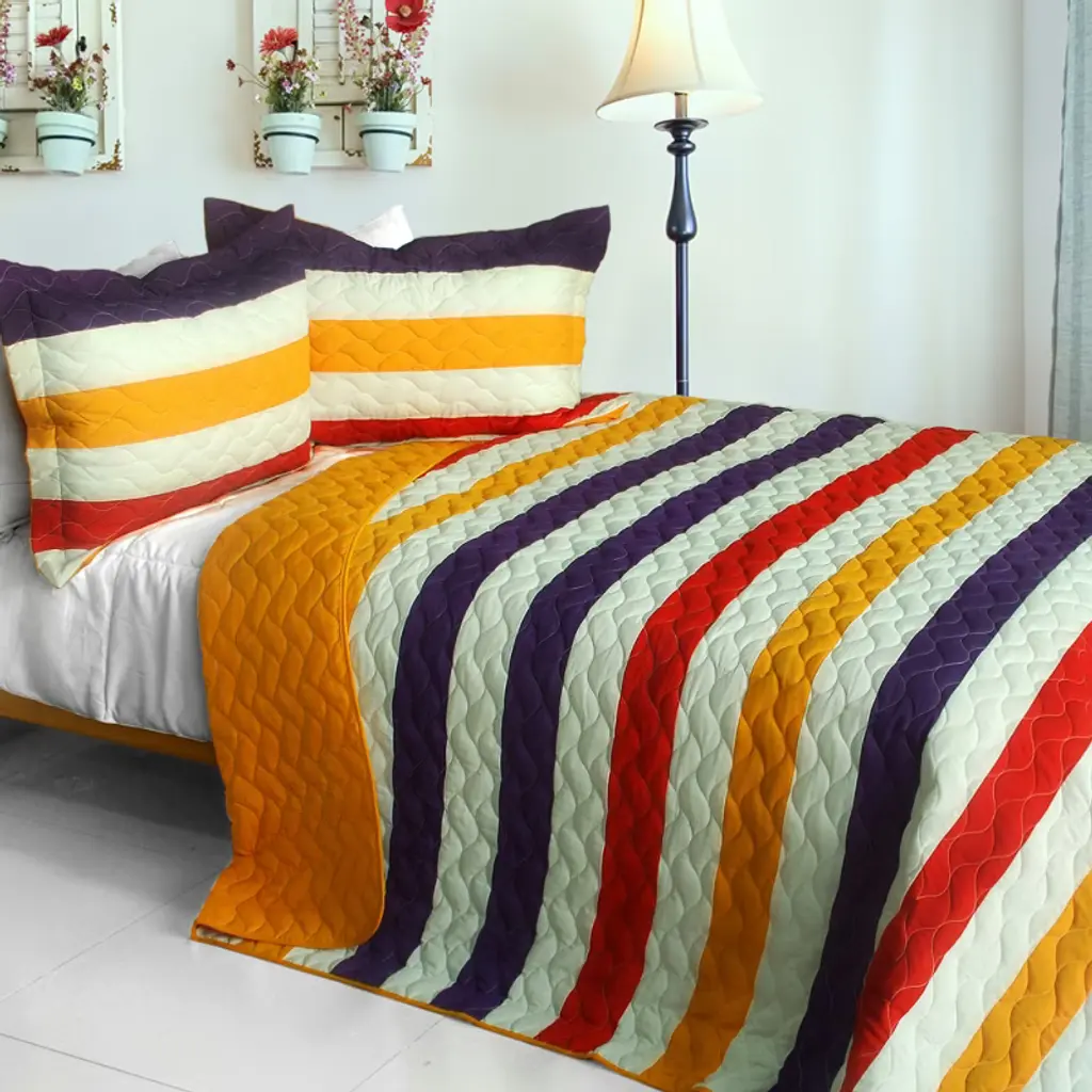 Refresh your bedroom look with the 3-Piece Vermicelli-Quilted Patchwork Quilt Set, designed to bring comfort and charm to any space. This set includes one quilt and two matching quilted shams, crafted with detailed vermicelli stitching for added texture. The handmade patchwork style offers a cozy and welcoming feel, while the classic stripe design pairs easily with a variety of room styles. Choose from Blue, Purple, or Pink to match your space. Each piece is pre-washed and pre-shrunk to maintain a consistent fit and soft feel. The quilt set is machine washable for easy care, making it a practical choice for everyday use. Whether updating your main bedroom or adding comfort to a guest room, this quilt set helps create a warm and inviting space.