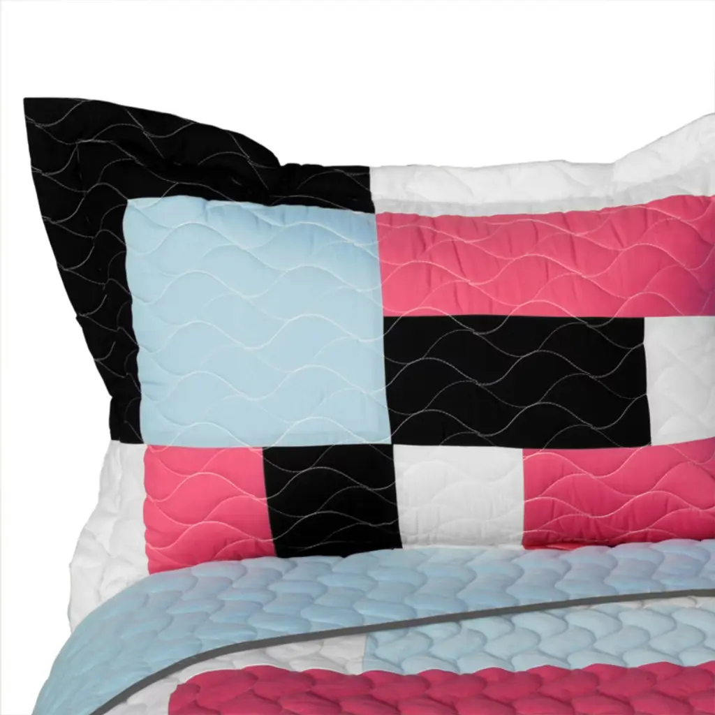 Slickblue Full/queen Patchwork Quilt Set, Reversible, Vermicelli Quilted, Geometric Pattern, 3Pc