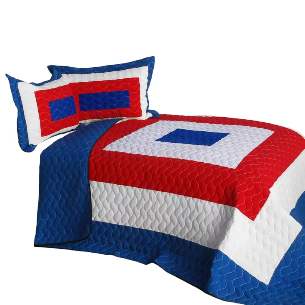 Slickblue Full/queen Quilt Set, 100% Tc Fabric Vermicelli Quilted Patchwork, Machine Washable, Design 2, 3Pc