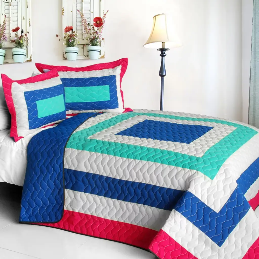Bring a warm, inviting look to your bedroom with the 3-Piece Vermicelli-Quilted Patchwork Quilt Set. Crafted from 100% TC fabric, this set includes a quilt and two matching quilted shams, designed to enhance your space with soft texture and cozy comfort. The intricate vermicelli quilting creates a rich surface texture that adds depth and warmth to any room. Available in four beautiful color options, this quilt set fits perfectly in a variety of decor styles. Handmade with slight variations in stitching for a unique touch, this set is pre-washed and pre-shrunk to maintain its quality. For convenience, it’s machine washable, ensuring easy care and long-lasting use. Whether you’re upgrading your own bedroom or gifting it to someone special, this quilt set is sure to transform any room into a cozy retreat.