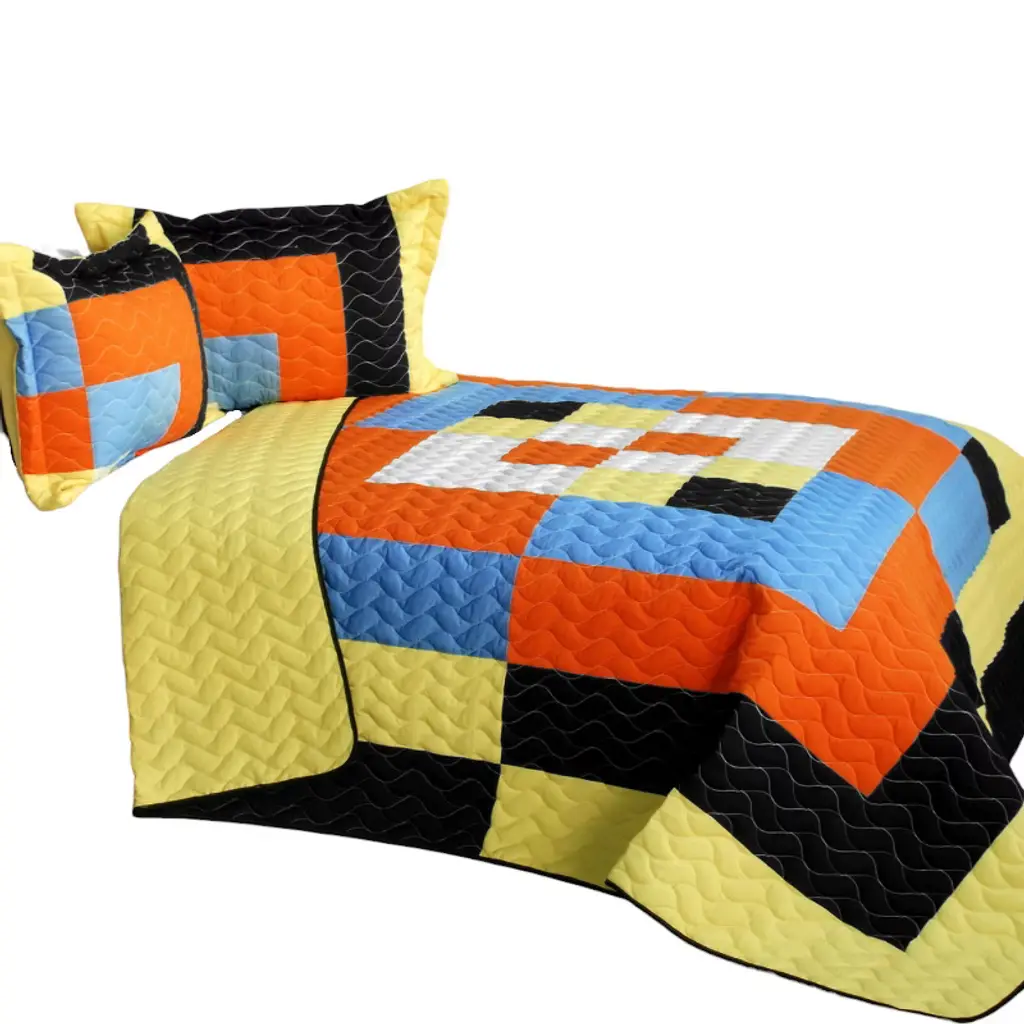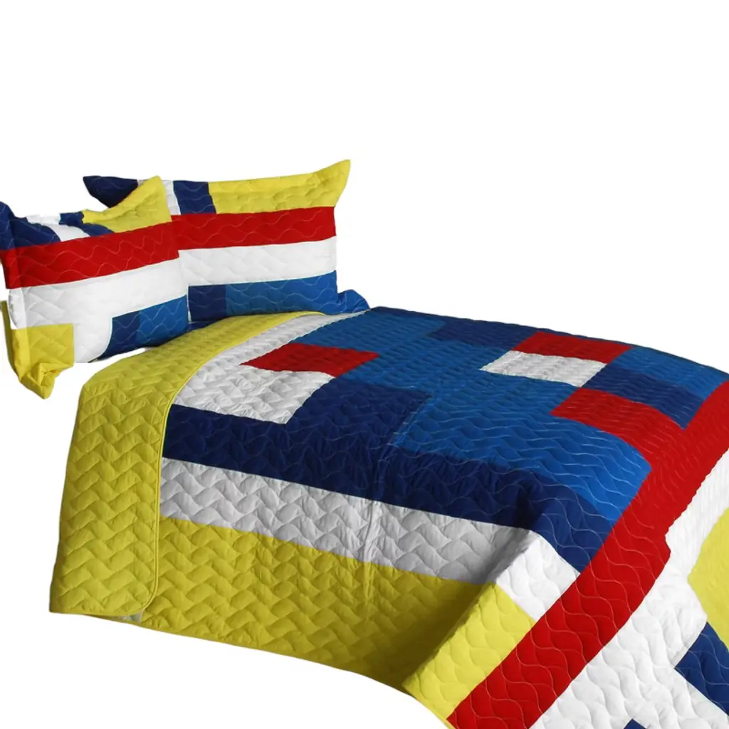 Slickblue Full/queen Size, Geometric Patchwork Quilt Set, Reversible & Machine Washable, 3Pc