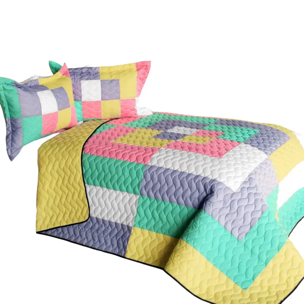 Slickblue Full/queen, Vermicelli Quilted Patchwork Quilt Set, Reversible, Tc Fabric, Patchwork, 3-piece