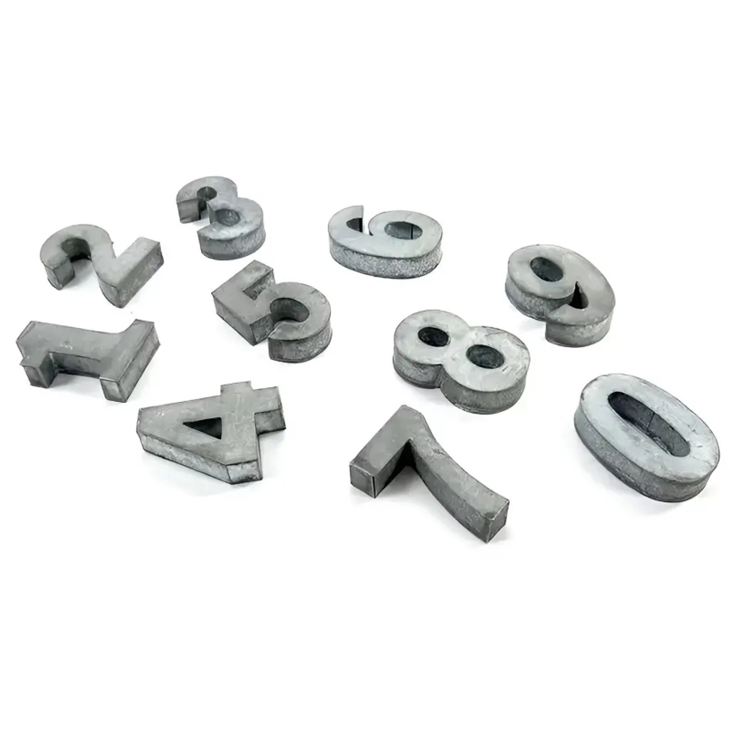 Organize and label your space with these Metal Zinc Numbers. Each number measures 6" for excellent visibility and is crafted from zinc for a clean, polished look. The set includes numbers 0 through 9, giving you full flexibility to display house numbers, office labels, or room identifiers. Designed for easy mounting, these numbers work perfectly on doors, walls, or mailboxes, providing a practical and stylish solution for indoor or outdoor use.
