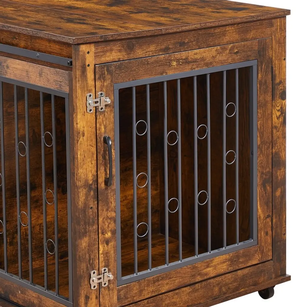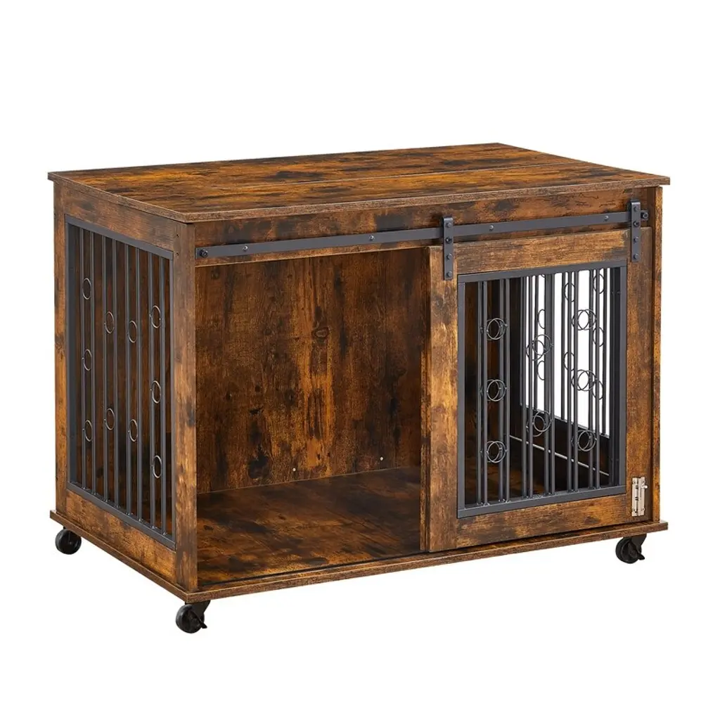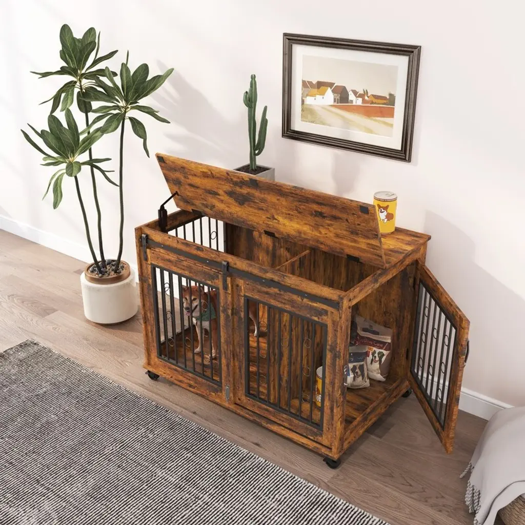 Sliding Door Dog Cage With Partition For Two Puppies, 39.37'' W X 25.20'' D X 28.94'' H - N/a - Rustic Brown
