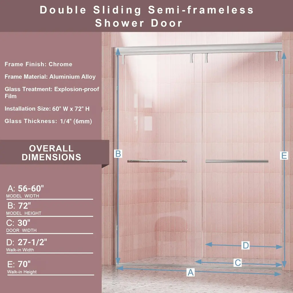 The stylish shower door makes your bathroom modernized. Enjoy your showers by creating a comfy privacy space. Keep your bathroom always tidy and clean.Tt has built-in adjustability to ensure that it is a perfect fit in your shower. You can be easily cleaned and maintained by using a squeegee after each use.Modern clear glass creates a beautiful finish that lets in light but also offers some privacy. It is the best choice for your bathroom.This shower door with a classic finish design adds more modern elements to your bathroom, creates a modest look and sleek appearance.It can stand the test of time because it will never go out of date.