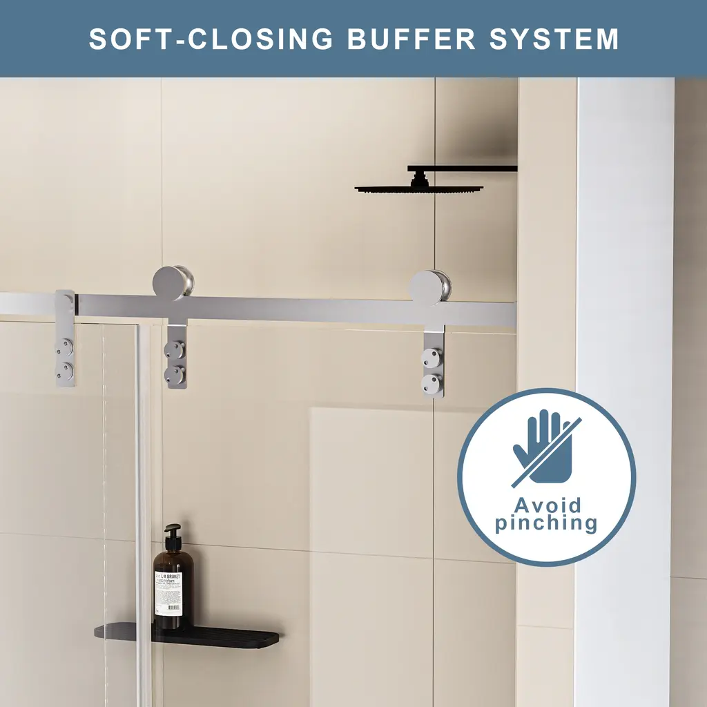 Modern clear glass creates a beautiful finish that lets in light but also offers some privacy. It is the best choice for your bathroom.The shower door is designed with sleek simple lines and concealed screw installation, which add more modern elements to your bathroom.The glass is spot, hard water, and fingerprint resistant and comes with a seal strip to make sure water does not leak.The instruction manual gives logical and clear illustrations for installation, and users can install this shower door without any problem as long as they follow the steps rightly. The stylish shower door makes your bathroom modernized. Enjoy your showers by creating a comfy privacy space. Keep your bathroom always tidy and clean.