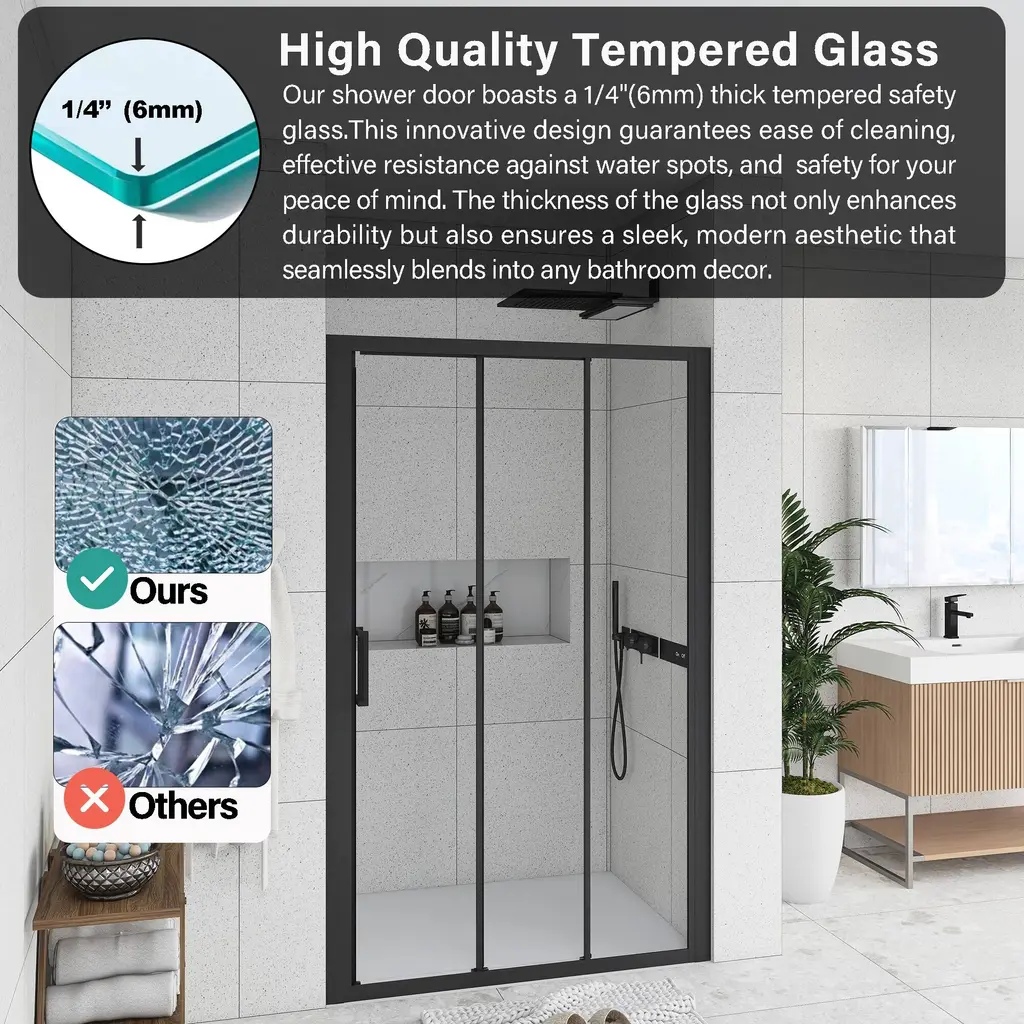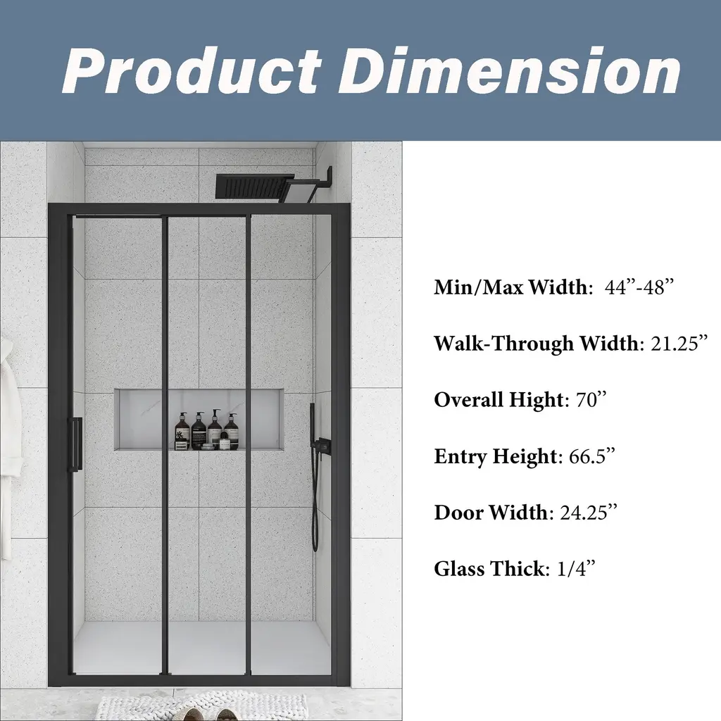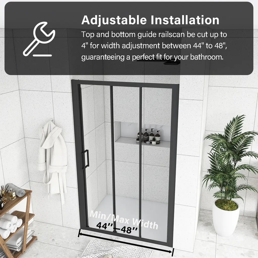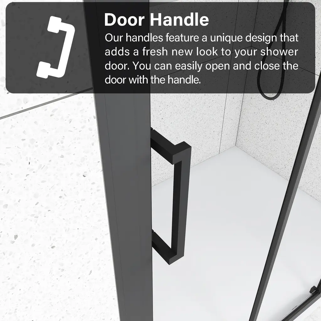 The stylish shower door makes your bathroom modernized. Enjoy your showers by creating a comfy privacy space. Keep your bathroom always tidy and clean.The semi-frameless shower door provides a more minimalistic look. It features a trackless style to create an open, inviting shower space.The shower door offers towel bars for additional bathroom storage. Provides easy access to towels and clothing after the shower.Modern clear glass creates a beautiful finish that lets in light but also offers some privacy. It is the best choice for your bathroom.This shower door with a classic finish design adds more modern elements to your bathroom, creates a modest look and sleek appearance.It can stand the test of time because it will never go out of date.