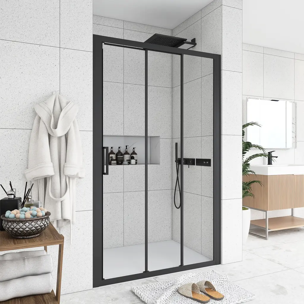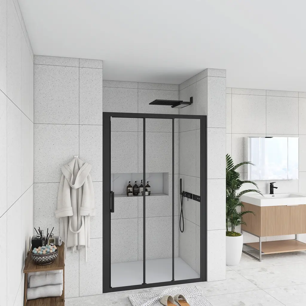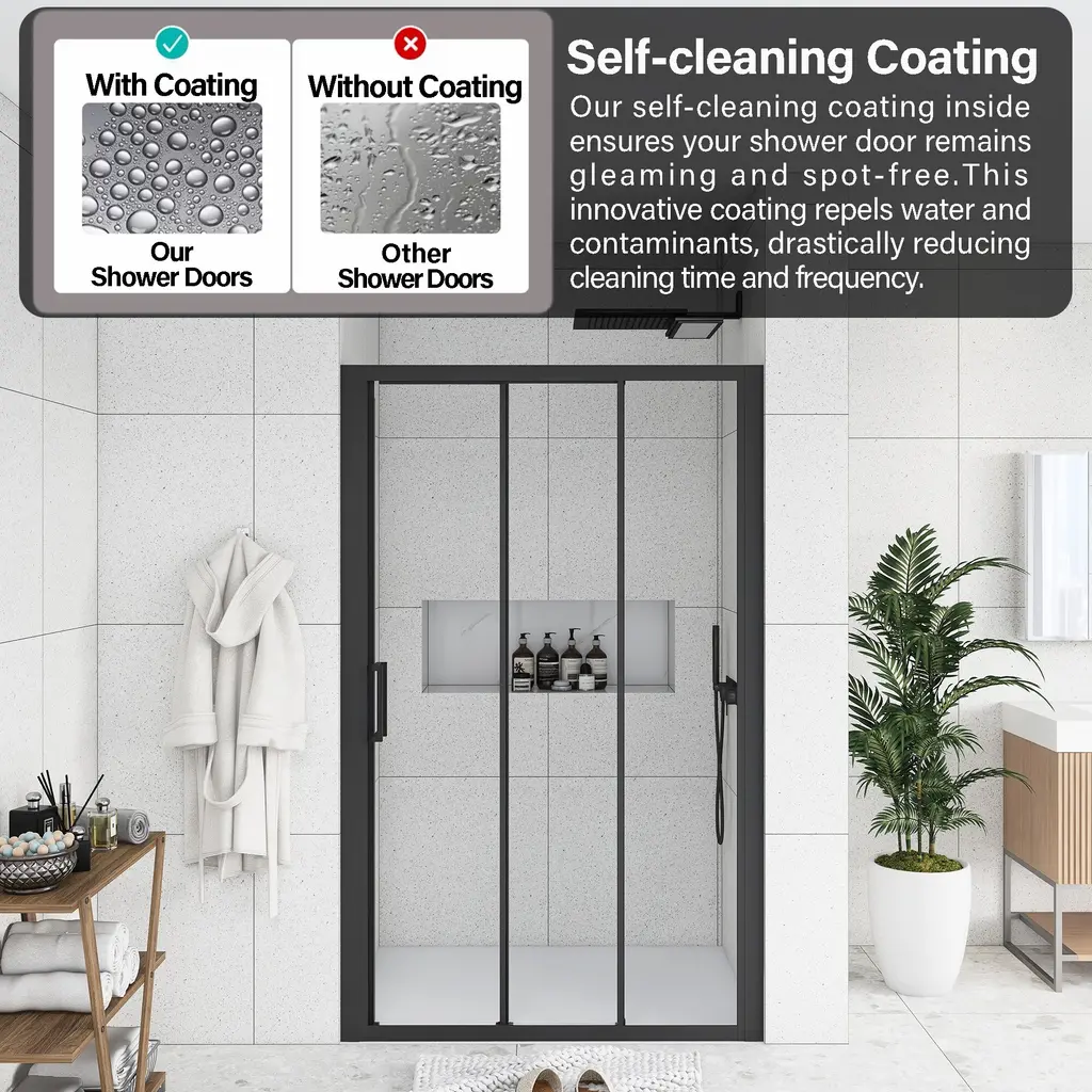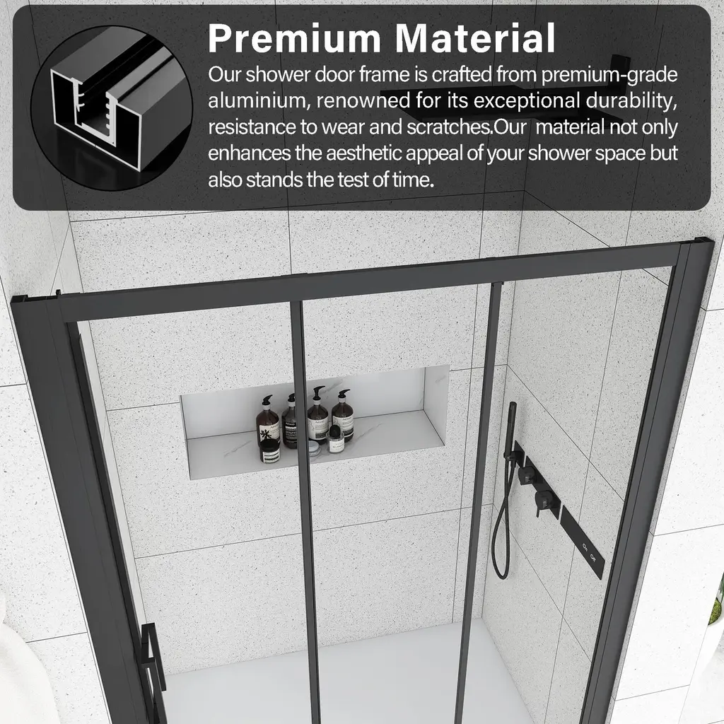 The stylish shower door makes your bathroom modernized. Enjoy your showers by creating a comfy privacy space. Keep your bathroom always tidy and clean.The semi-frameless shower door provides a more minimalistic look. It features a trackless style to create an open, inviting shower space.The shower door offers towel bars for additional bathroom storage. Provides easy access to towels and clothing after the shower.Modern clear glass creates a beautiful finish that lets in light but also offers some privacy. It is the best choice for your bathroom.This shower door with a classic finish design adds more modern elements to your bathroom, creates a modest look and sleek appearance.It can stand the test of time because it will never go out of date.