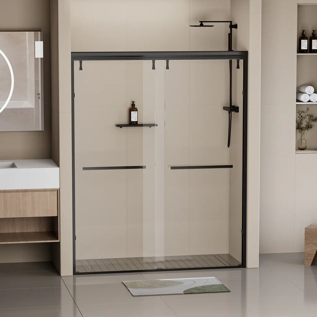 Sliding Semi-Frameless Shower Door - Matte Black - 48" X 76"