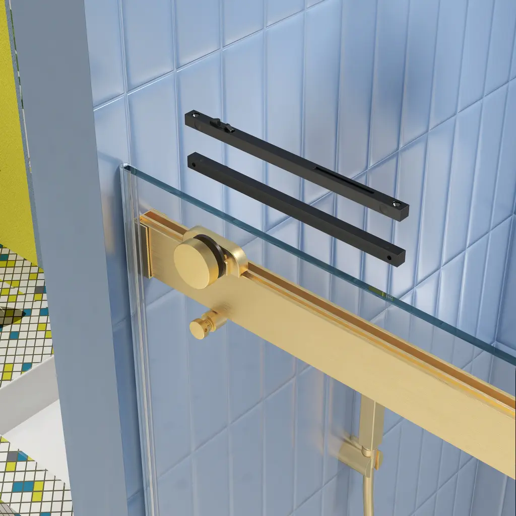 Our double sliding shower door is the ultimate bathroom upgrade. The alu top track paired with high-quality #304 stainless steel hardware is built to last, having passed an astonishing 36,000 times open and close test. This robust construction ensures years of reliable use.The SGCC 5/16" tempered clear glass features a Nano easy clean treatment, making daily cleaning effortless. With an added anti-explode film, it offers extra safety, giving you peace of mind. The smooth and comfortable sliding system allows for seamless operation, while the soft close system shuts the doors gently, eliminating any slamming noises.It has excellent anti-leakage capabilities, keeping your bathroom floor dry. The frameless design not only looks sleek and modern but also comes with good anti-collision properties. And it's easy to install, saving you time and hassle. With this shower door, you'll enjoy a stylish, functional, and worry-free showering experience.