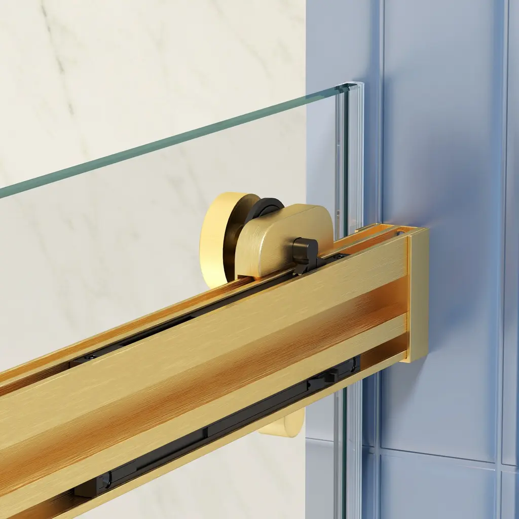 Sliding Semi-Frameless Shower Door With Clear Glass - Brushed Gold - 48" X 74"