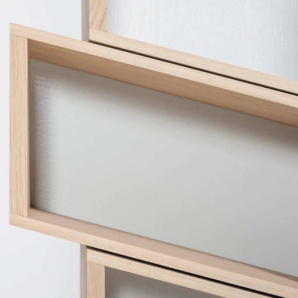 Shelve sliding 100% solid French raw oak, from sustainableforests, France. With white backs. Back colors can be selected in different colors, on request. From Anjou in France.Available in raw oak, price: 1850,00,00€Available in varnished oak, price: 2350,00€