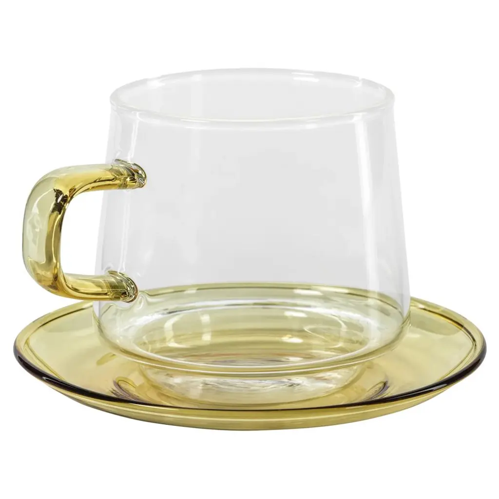 Opulence and rigor are unexpectedly synthesized in this superb set of two espresso cups with saucers. Fashioned of clear crystal, the minimalist cups pair perfectly with the gleaming saucers, plated in a gold alloy and adorned with different hand-hammered textures, a testament to their artisan production. Borrowing from tradition as much as it does from contemporaneity, each piece is unique and will effortlessly complete your luxury kitchenware collection.