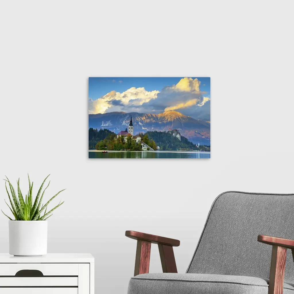 Slovenia, Upper Carniola, Julian Alps, Triglav National Park, Bled, Bled Island with the Church of the Assumption.