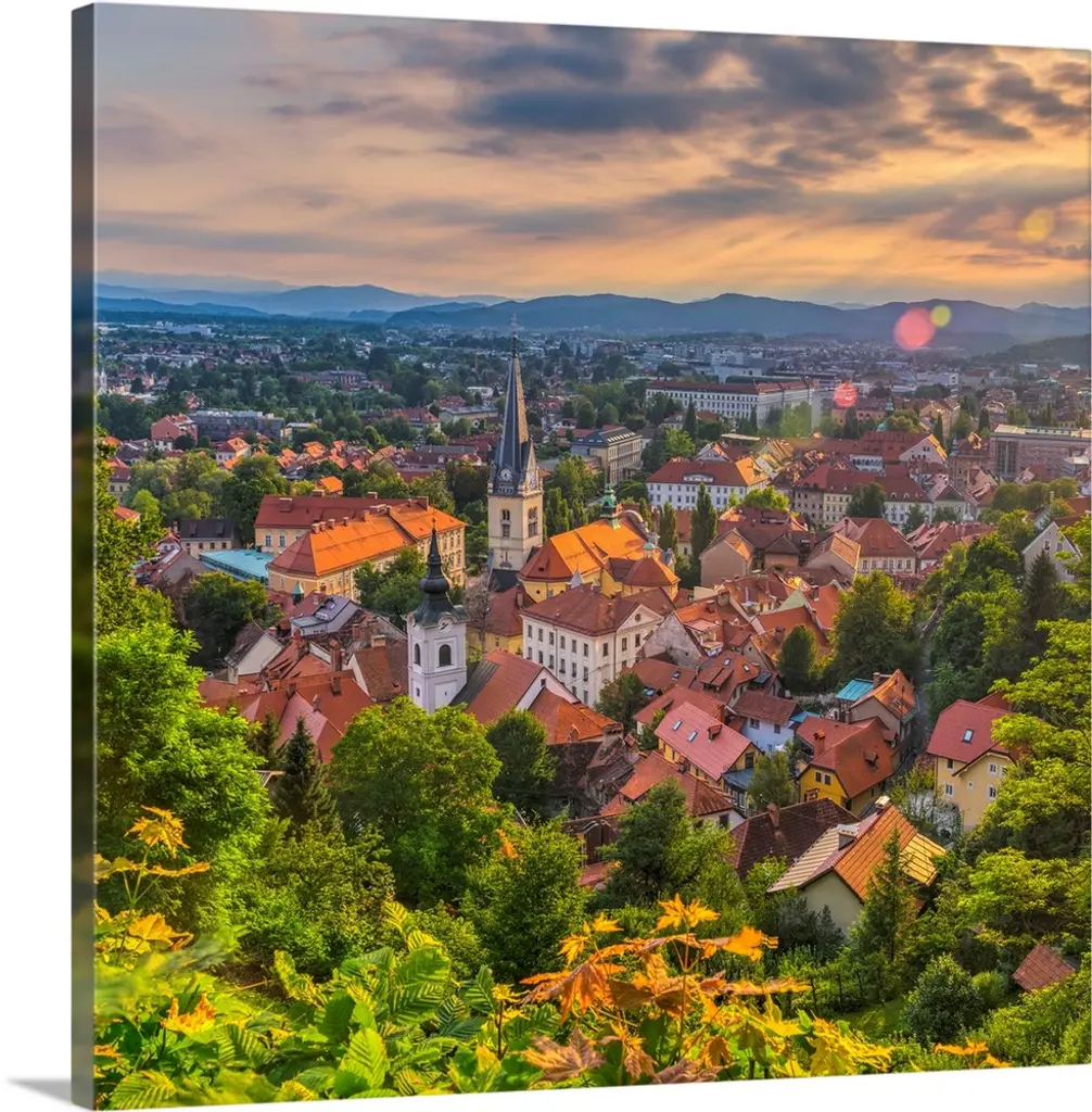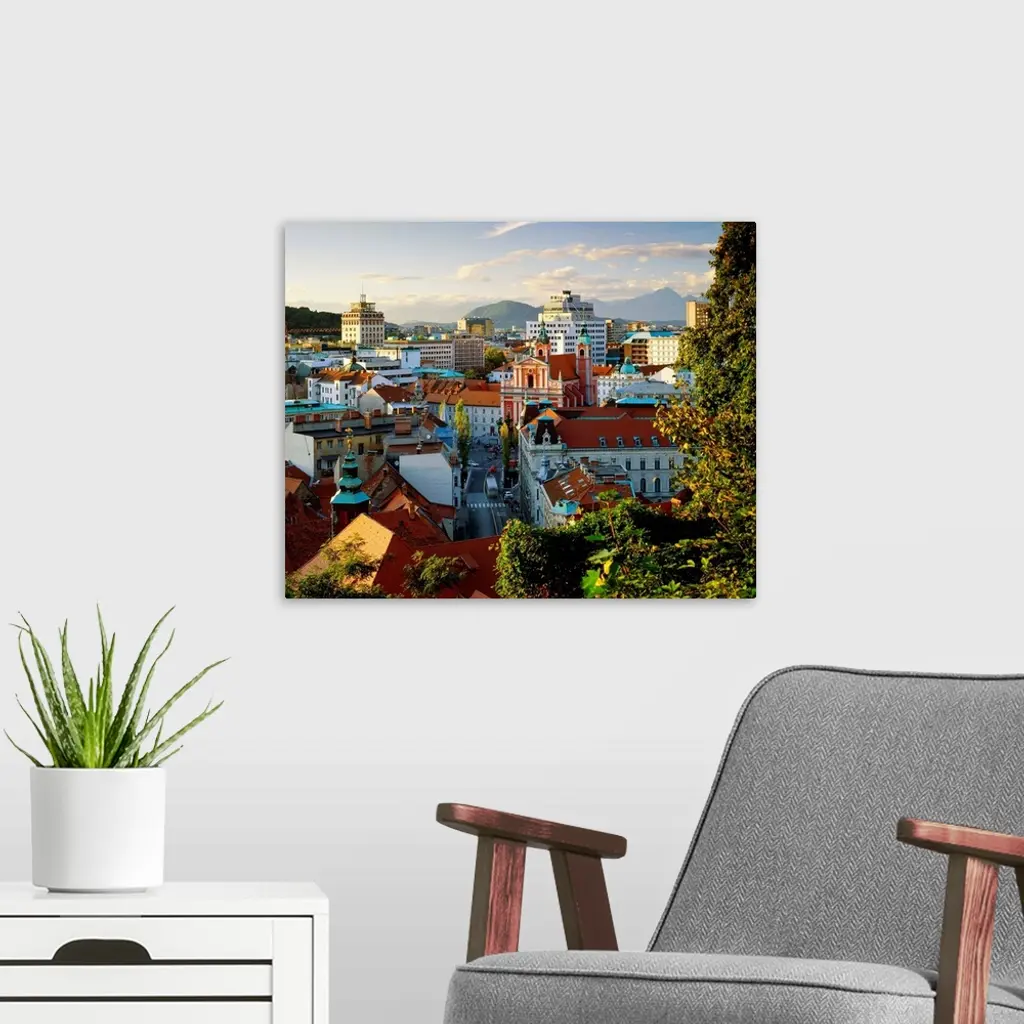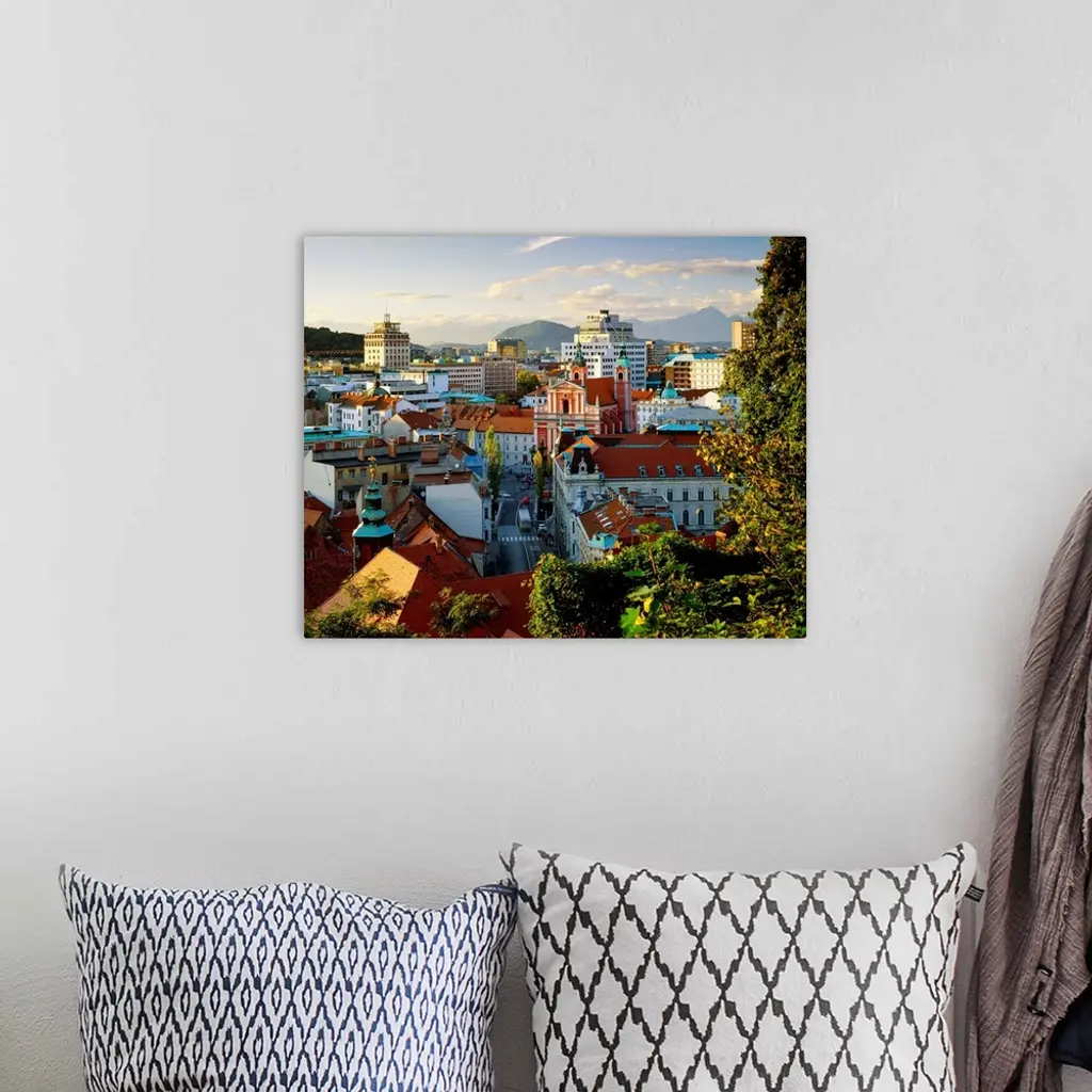 Slovenia, Ljubljana, View of the city from the castle wall art for home and office decor. Discover canvas art prints, photos, mural, big canvas art and framed wall art in GreatBigCanvas.com's varied collections.