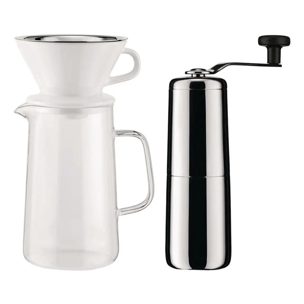 The Alessi Slow Coffee product series encourages you to savor not only the cup of coffee itself but also the moment of making it. Grinding the coffee beans, carefully pouring water over the grounds, and witnessing the coffee slowly drip into the pot, even the most mundane morning coffee transforms into a calming sensorial ritual. According to designer Keiji Takeuchi, 'drinking a coffee' is very different from 'having a coffee,' the latter being a more all-encompassing experience. Preparing the drink offers a moment for reflection and awakening the senses: imagine the aroma of the coffee beans, the "drip, drip, drip" as the coffee flows into the pot, and the delicious first sip of coffee you've prepared from the very beginning. The Slow Coffee coffee grinder features a ceramic mechanism and a detachable crank, allowing the grinder to take up minimal space. You can easily adjust the coarseness of the grind to your liking or to best suit the beans you are using.