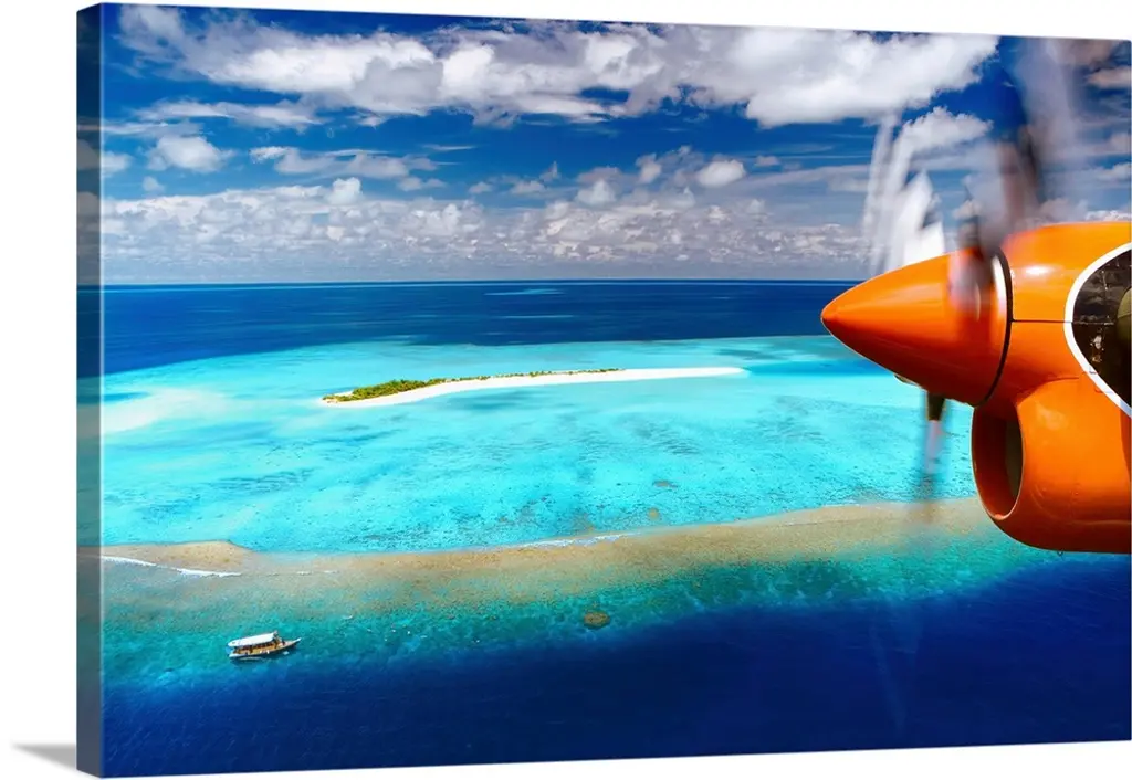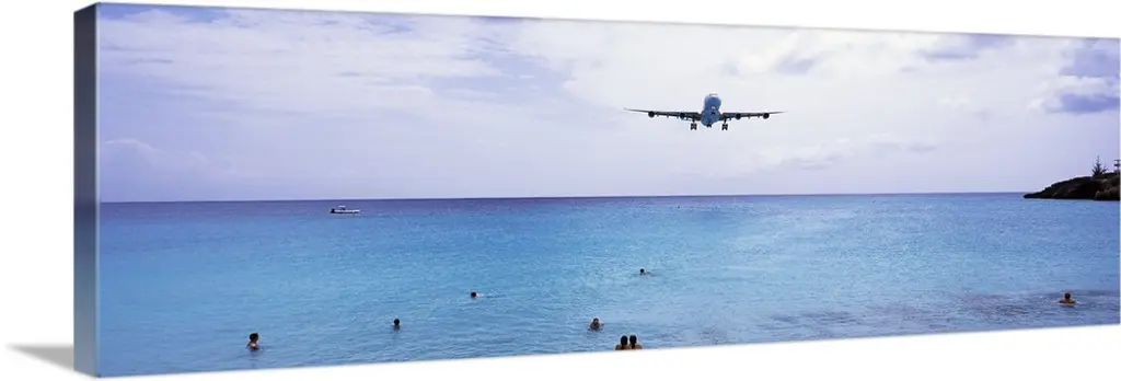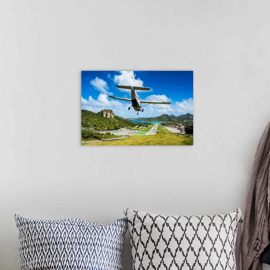 Small airplane landing at the airport of St. Barth, Lesser Antilles, West Indies, Caribbean