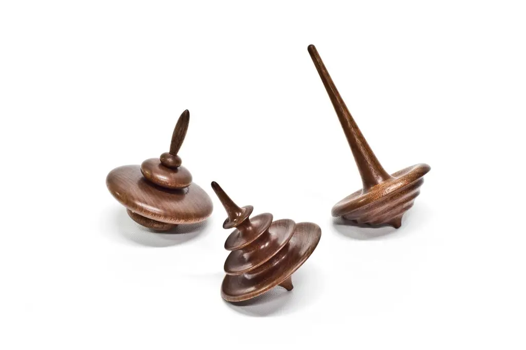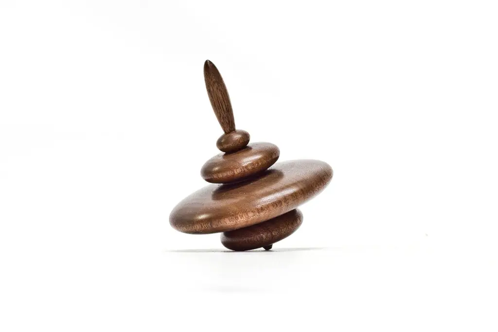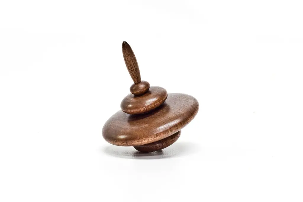 Small Cairn Elemental Spinning Top In Oiled Walnut By Alvaro Uribe For Wooda