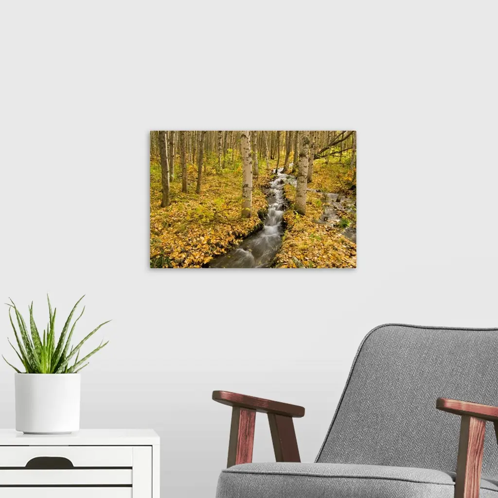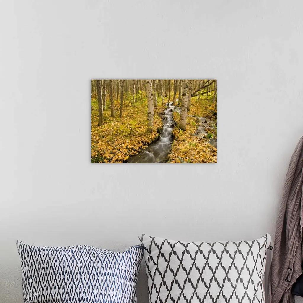 Small Creek Flows Through Autumn Leaf Covered Forest Floor, Chugach State Park, Alaska