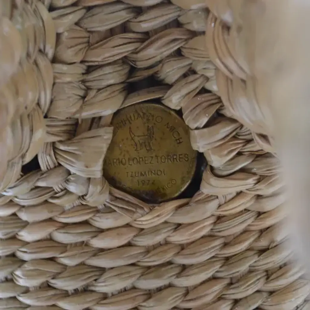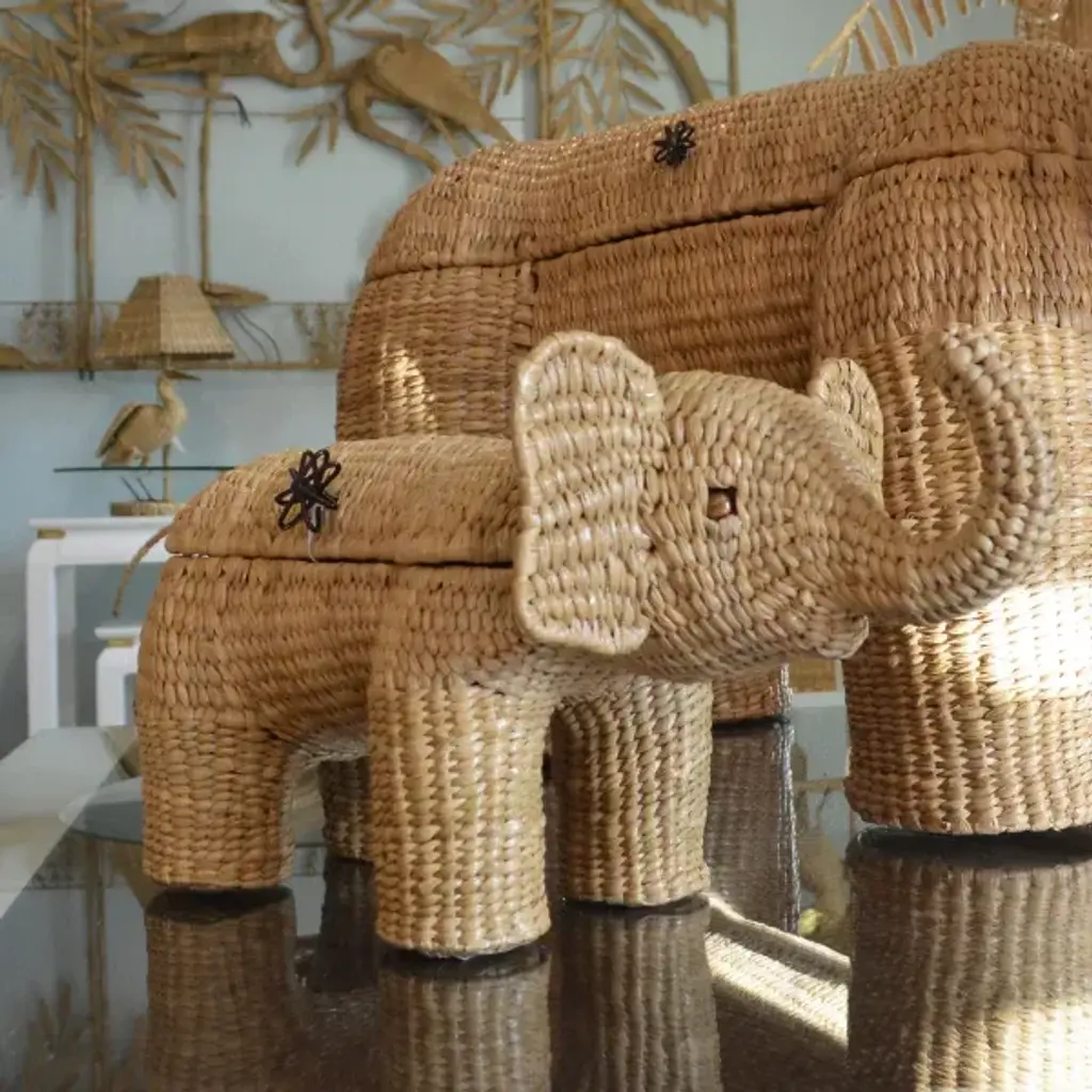 Small Elephant Trunk by Mario Lopez Torres. There are minor imperfections to the hand-made woven rattan. Signed Mario Lopez Torres Est. 1974. (see photos)