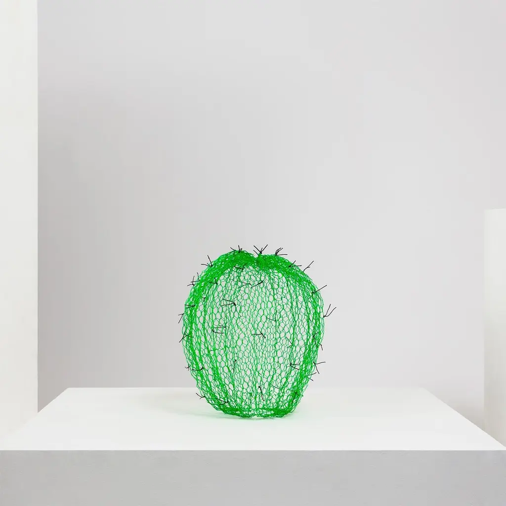 Small Green Cactus With Black Plugs In Wire Mesh By Benedetta Mori Ubaldini