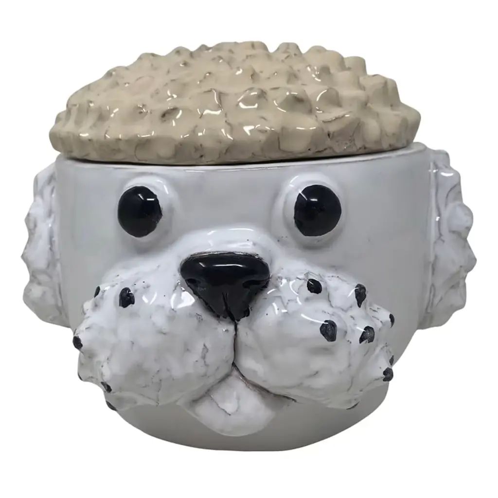 A playful and iconic addition to an eclectic interior space, this handcrafted ceramic container with a lid features the singular shape of a cat's head, enameled by hand in orange and white tones. An exquisite gift idea, it can be used to store objects or food alike. Customizable in color upon request. Due to its handcrafted nature, no two pieces are alike and any differences from the pictured item are to be expected and treasured.