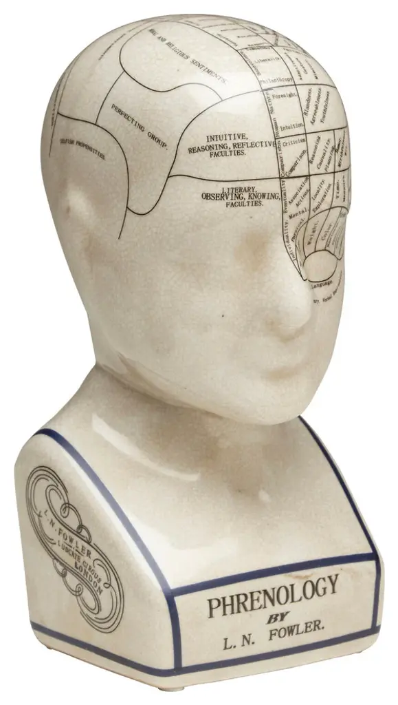 Antique white crackle finish porcelain with blue painted trim and black painted words and lines