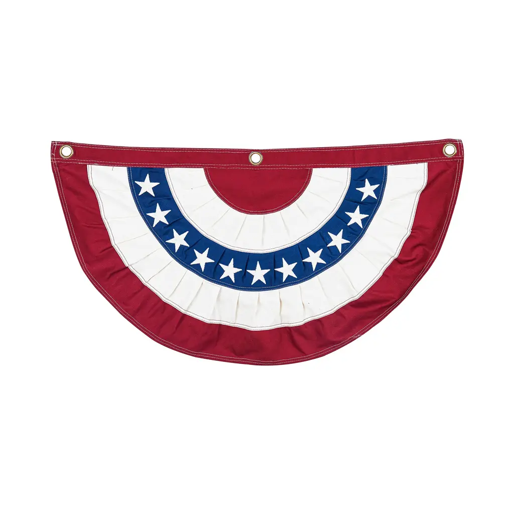 Our bunting makes it easy to add star-spangled spirit to almost any location. Our cotton bunting has embroidered stars, pieced fabric and three top grommets for easy hanging. Bright red, blue and soft off-white colors give our bunting its nostalgic appearance. Hang these patriotic decorations from porch railings, under windows and more to celebrate American holidays from Memorial Day to Independence Day and Labor Day. Machine wash cold. Imported.