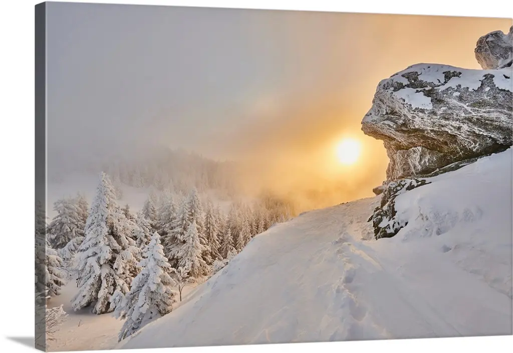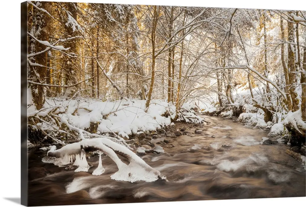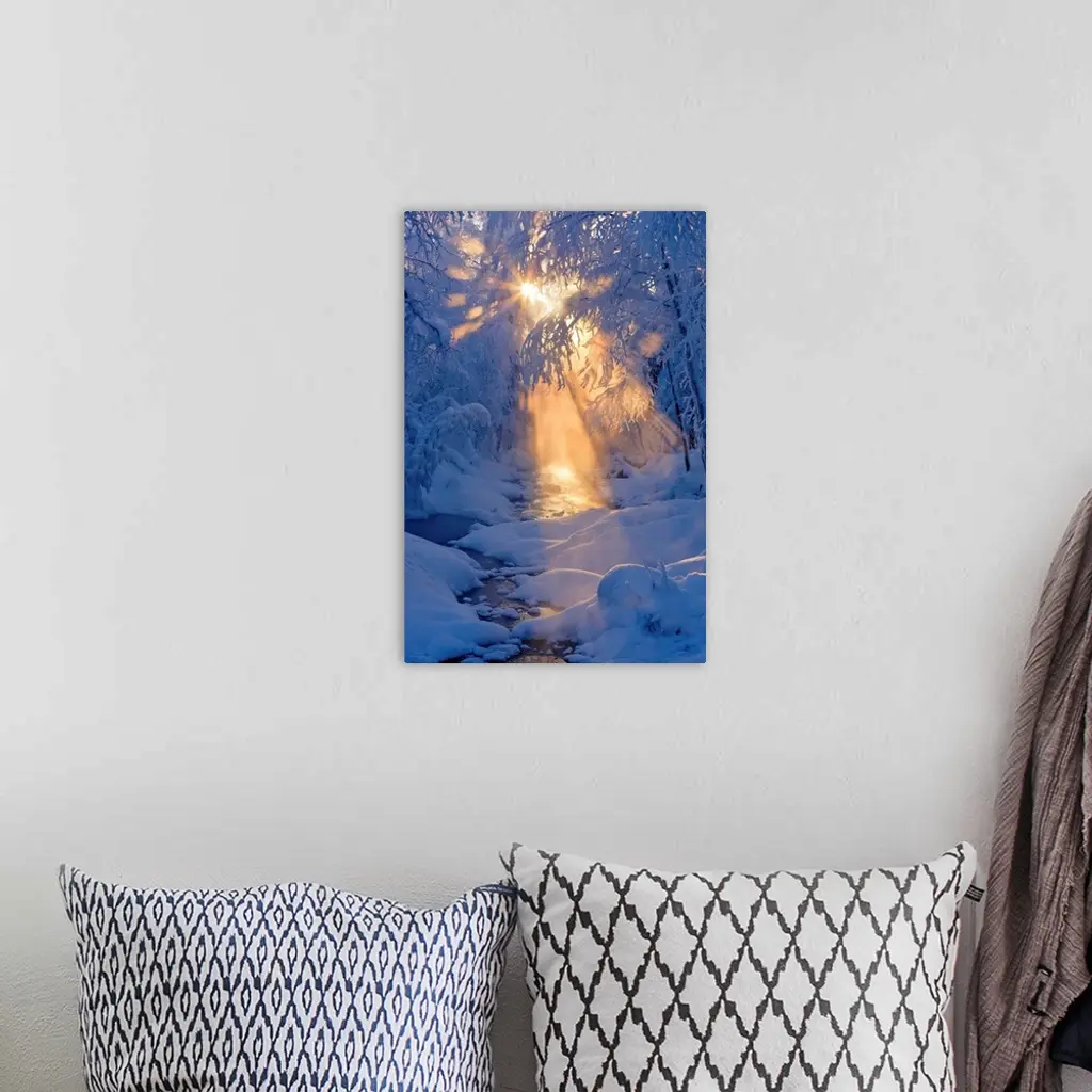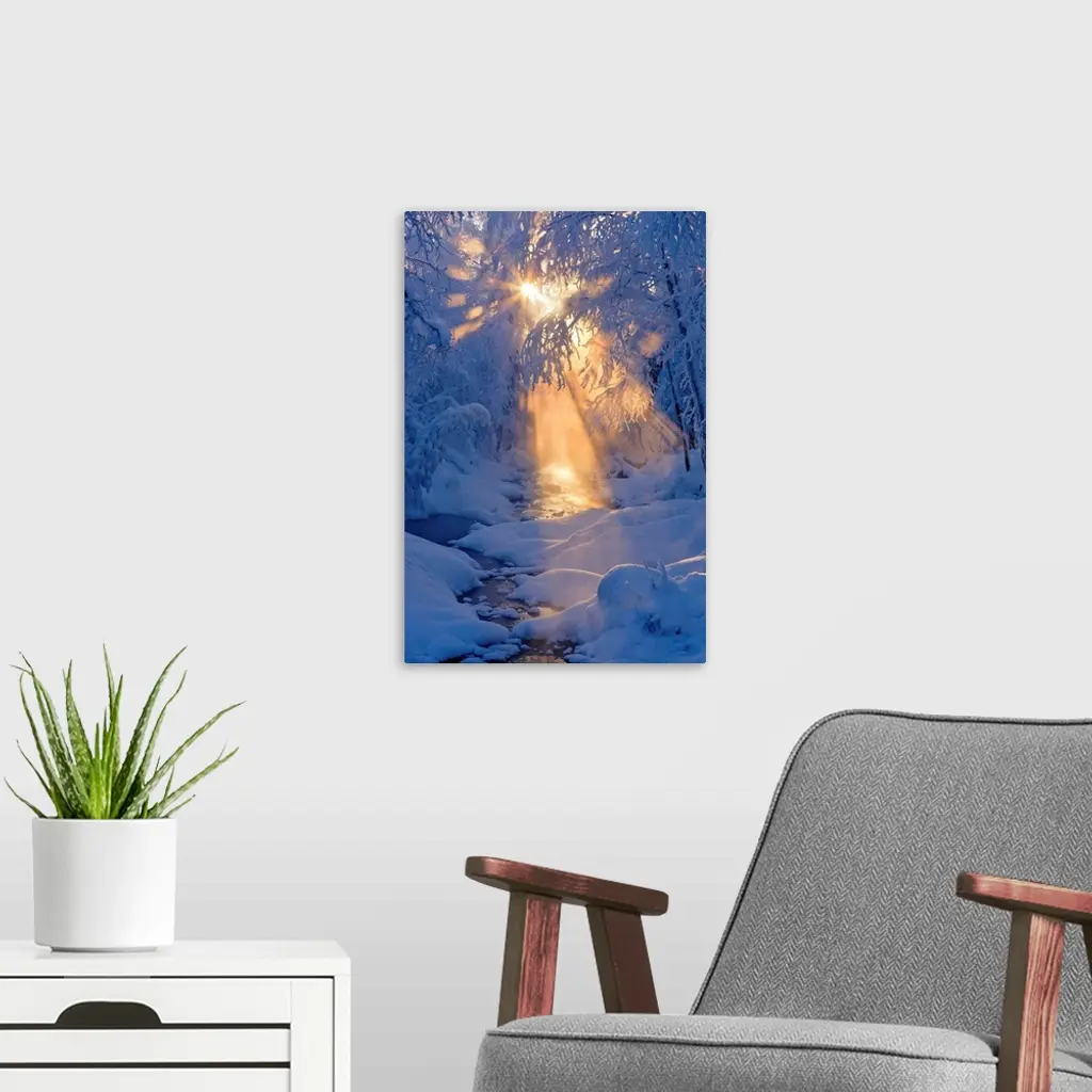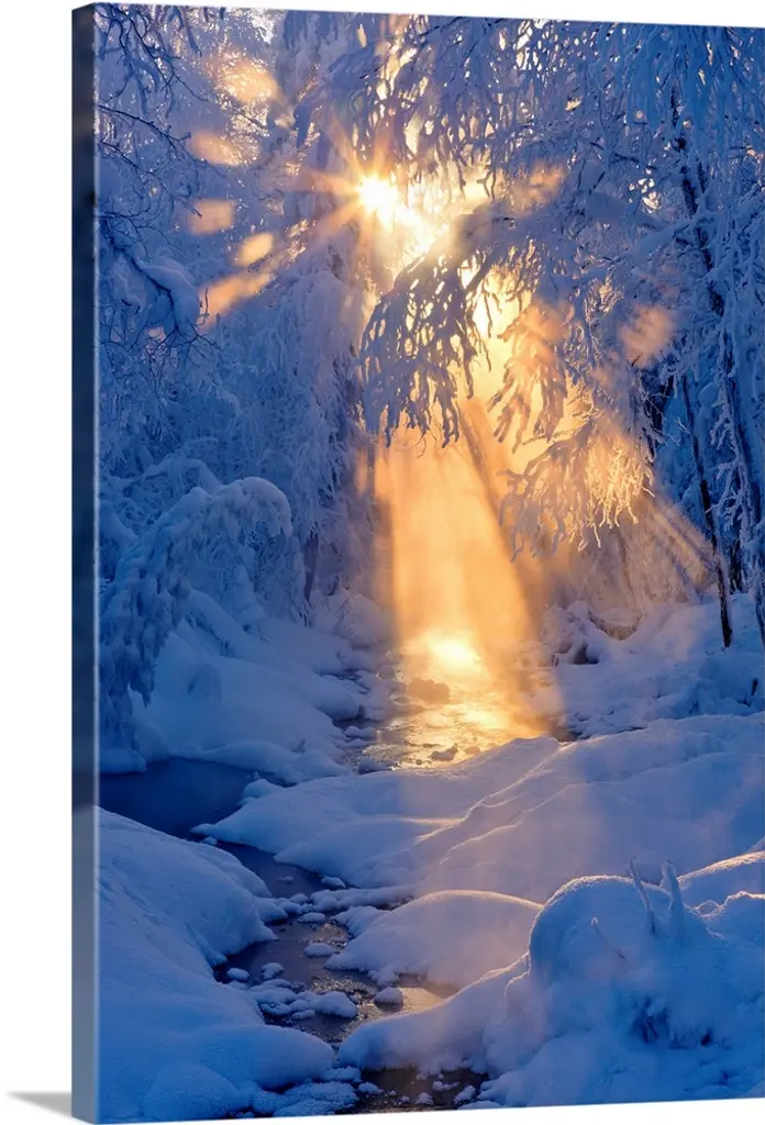 Small Stream In A Hoarfrost Covered Forest With Rays Of Sun, Alaska wall art for home and office decor. Discover canvas art prints, photos, mural, big canvas art and framed wall art in GreatBigCanvas.com's varied collections.