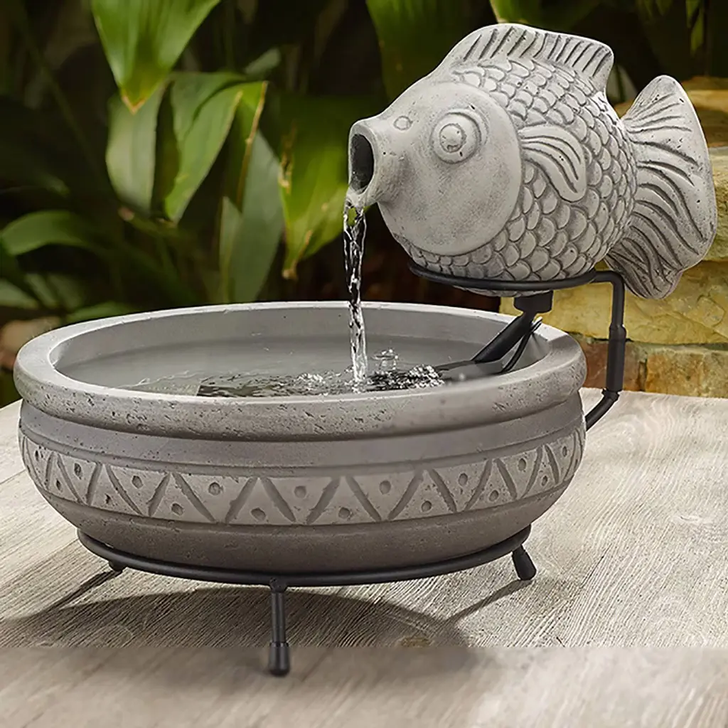 Smart Solar 12.99" Cement Marin Solar Fish Sculptural Fountain