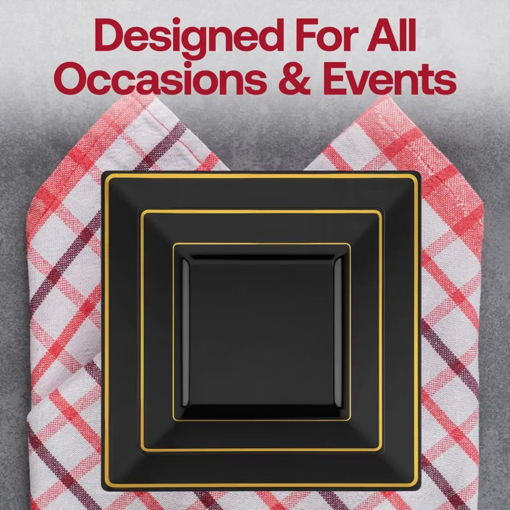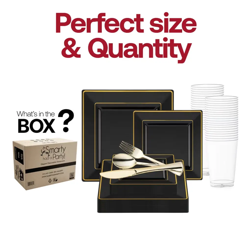 Smarty Had A Party Black W/ Gold Square Edge Rim Plastic Wedding Set - 60 Sets