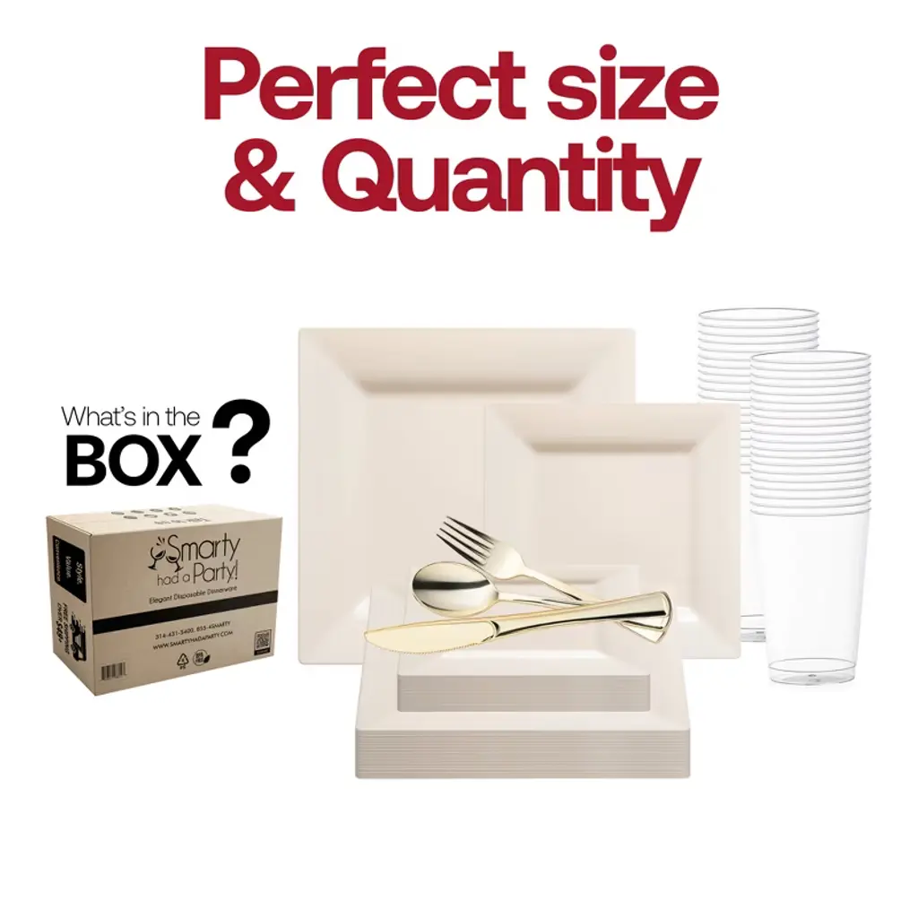 Smarty Had A Party Ivory Square Plastic Wedding Set - 120 Sets