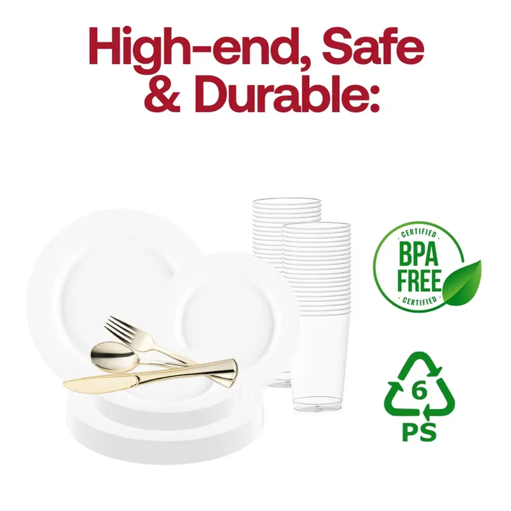 Grab our Matte Milk White Round Disposable Plastic Wedding Set. Take advantage of incredible price reductions on these party essentials. Impress guests!