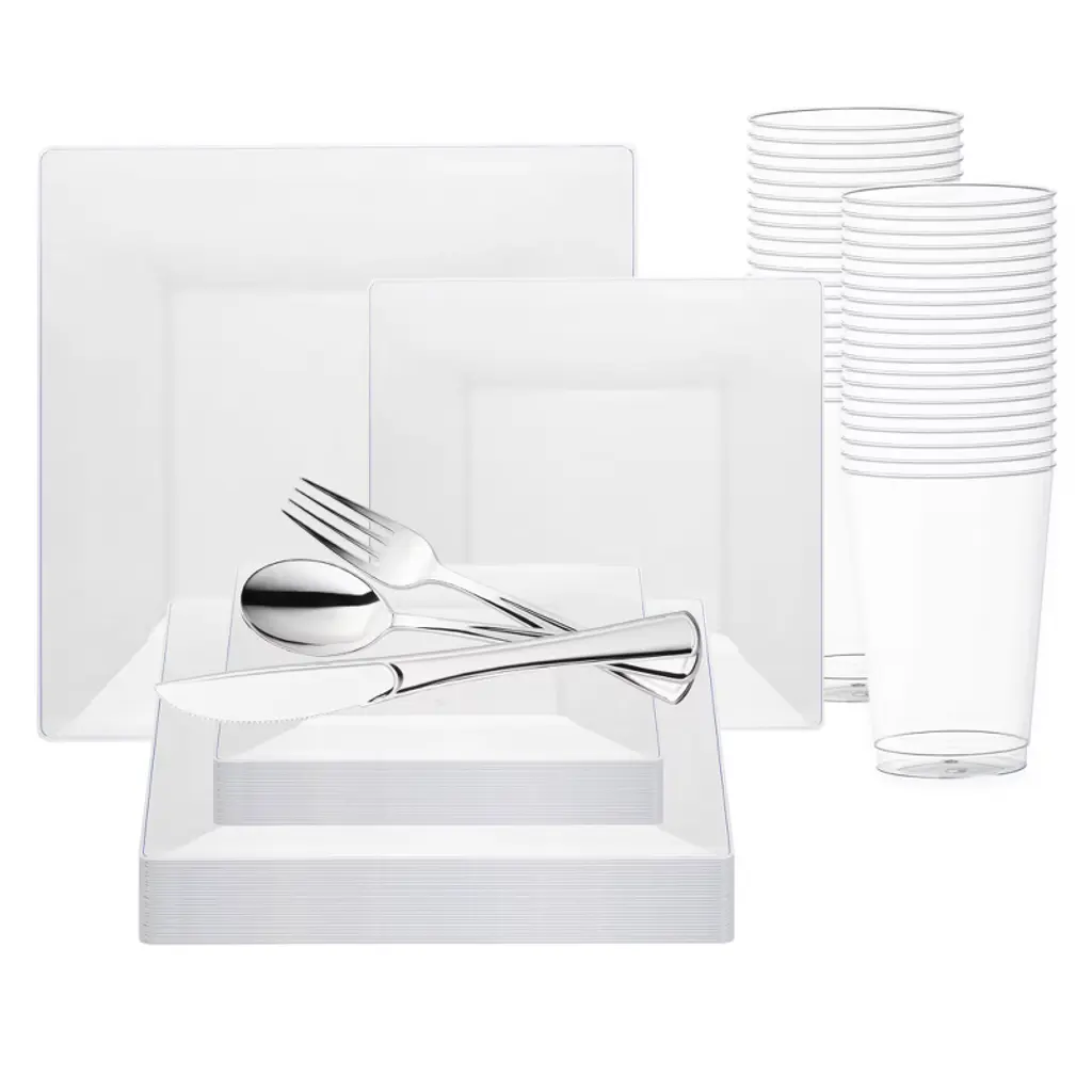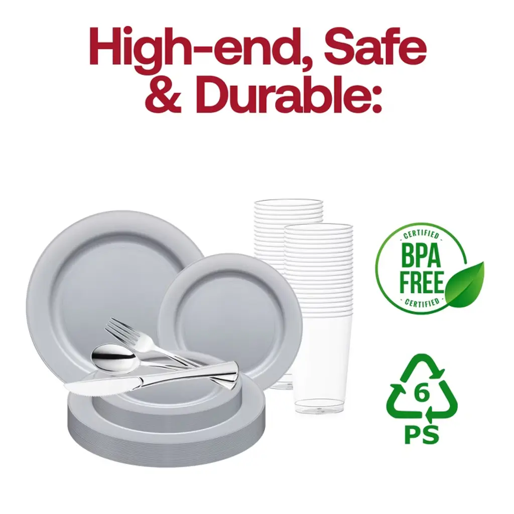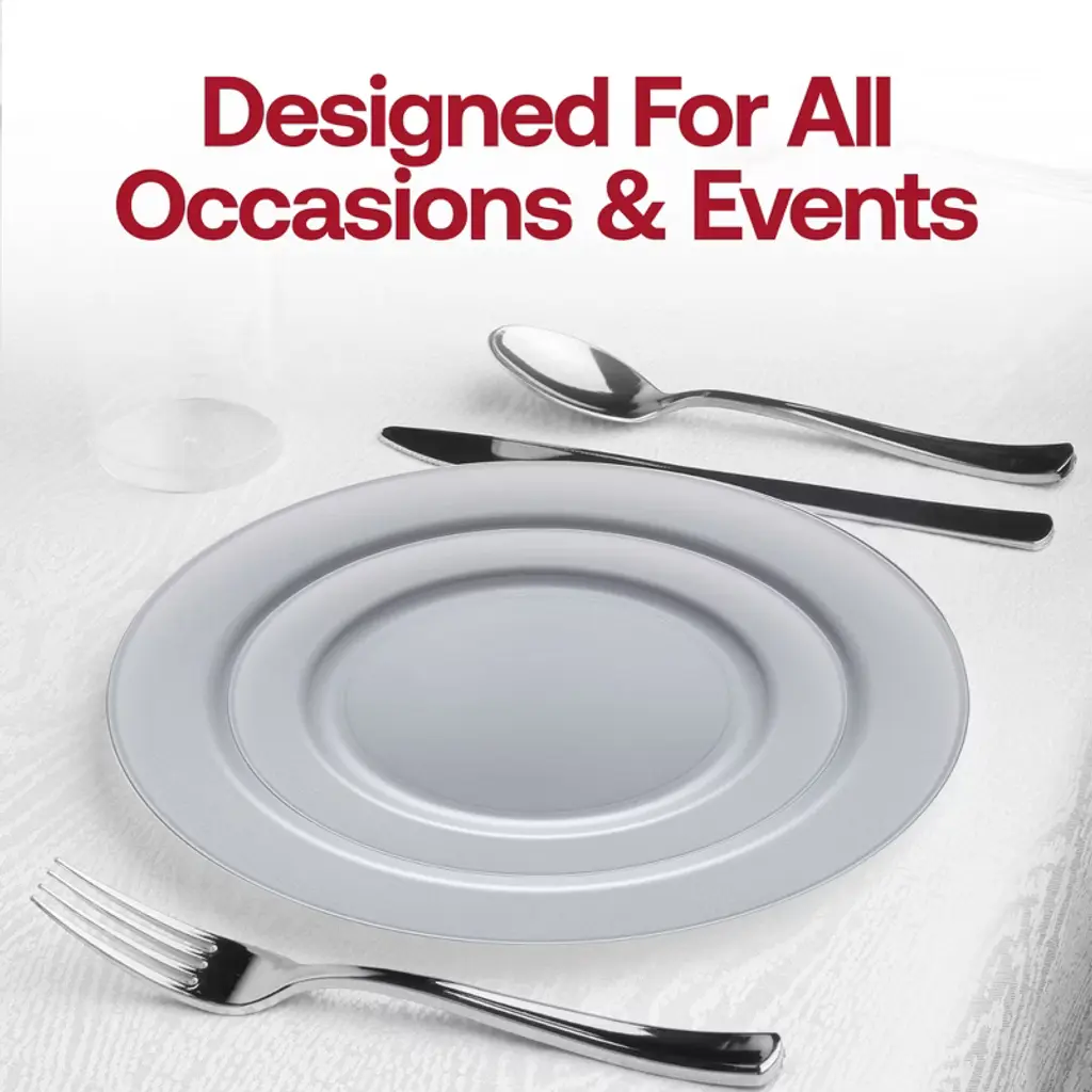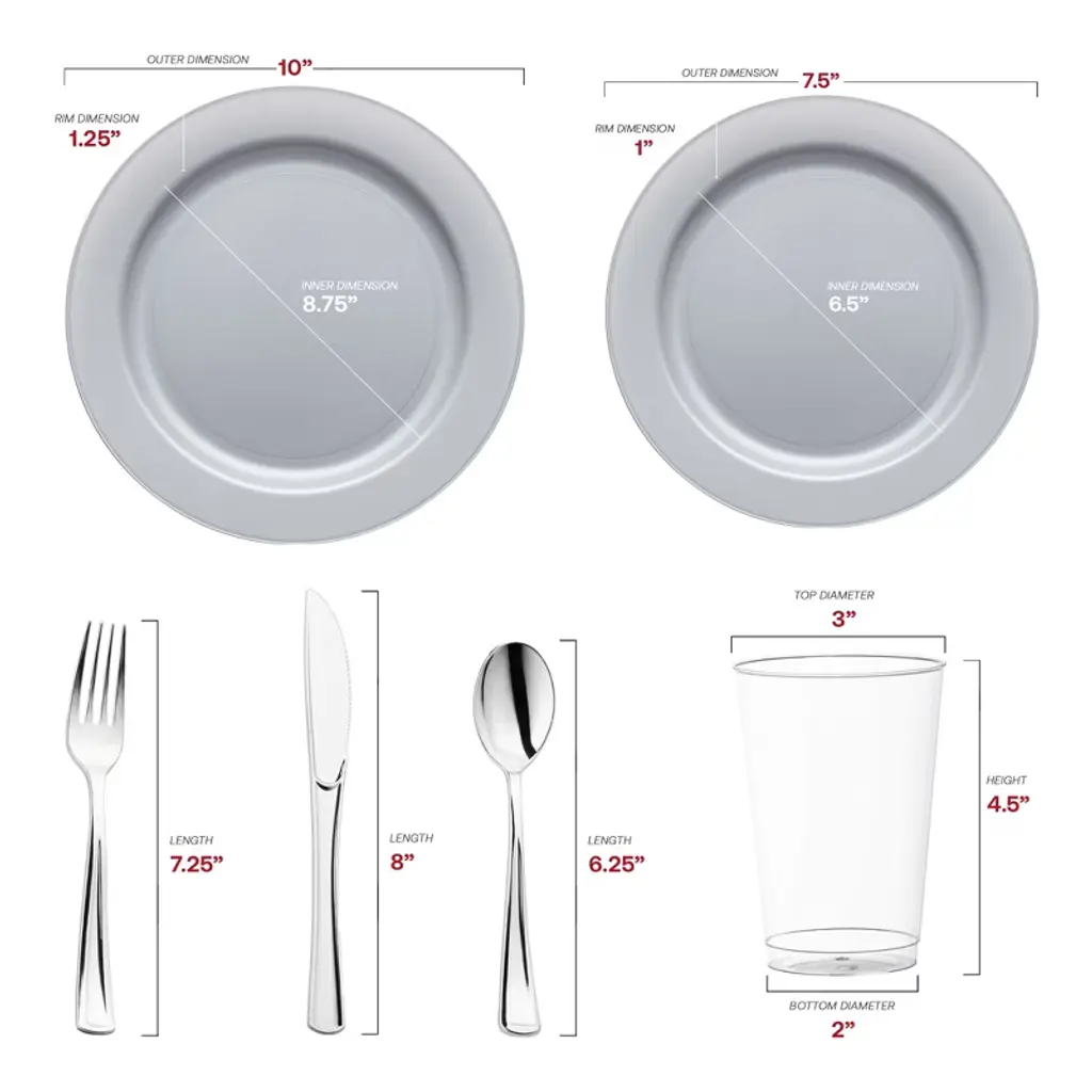 Buy our Matte Steel Gray Round Disposable Plastic Wedding Set. Fancy, sturdy, and budget-friendly the easiest way to add a high-end look to your dining.