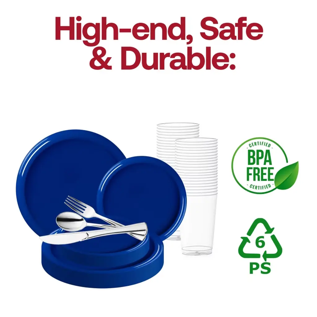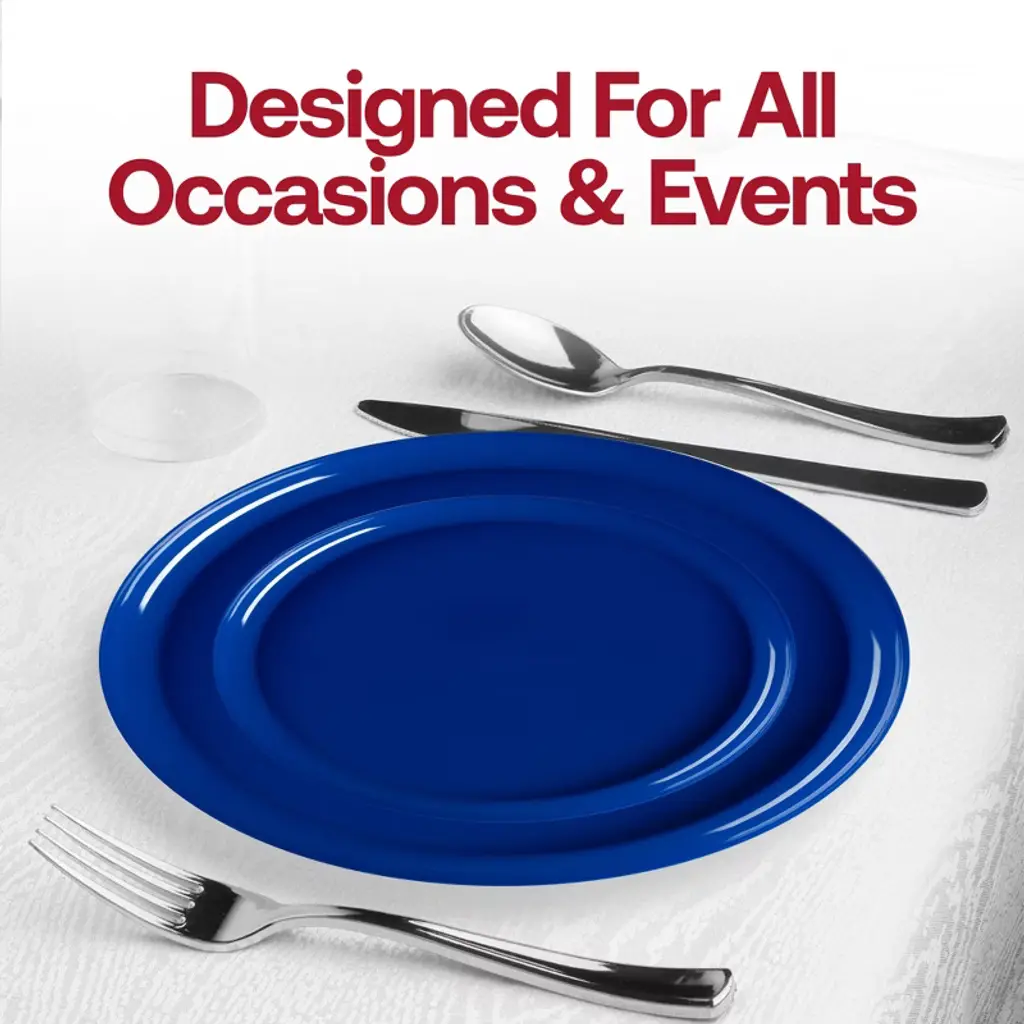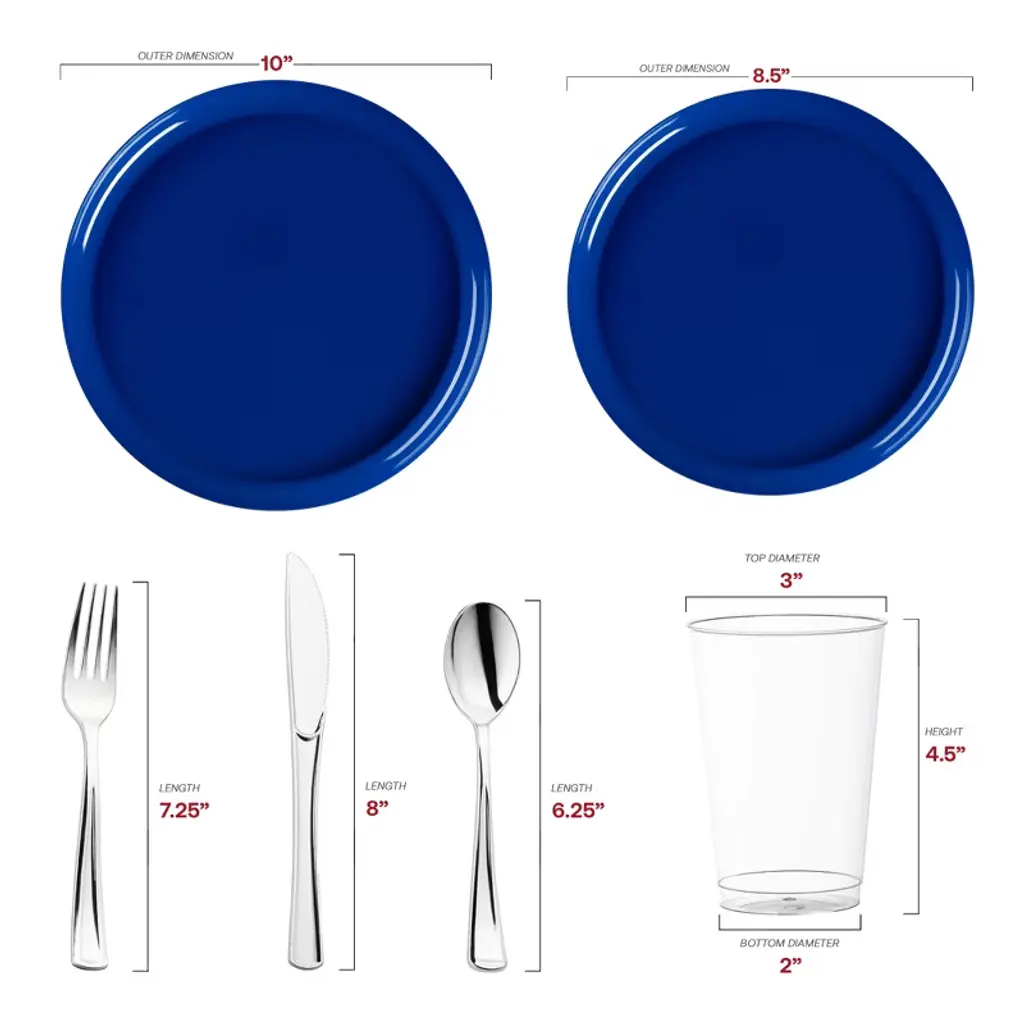 Smarty Had A Party Solid Blue Flat Round Plastic Wedding Set - 30 Sets