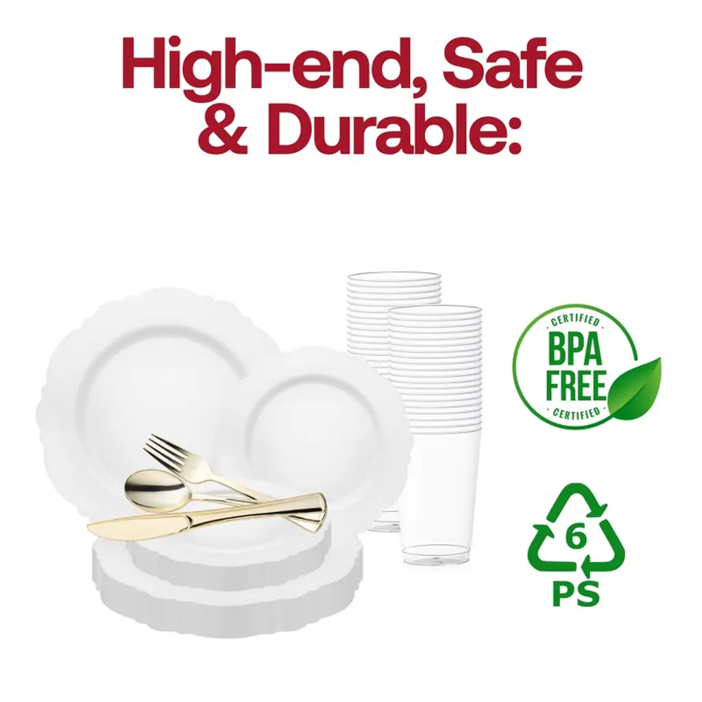 Get our Solid White Blossom Disposable Plastic Wedding Set. This low-priced set offers great value and rapid delivery. Elevate your big wedding day today!
