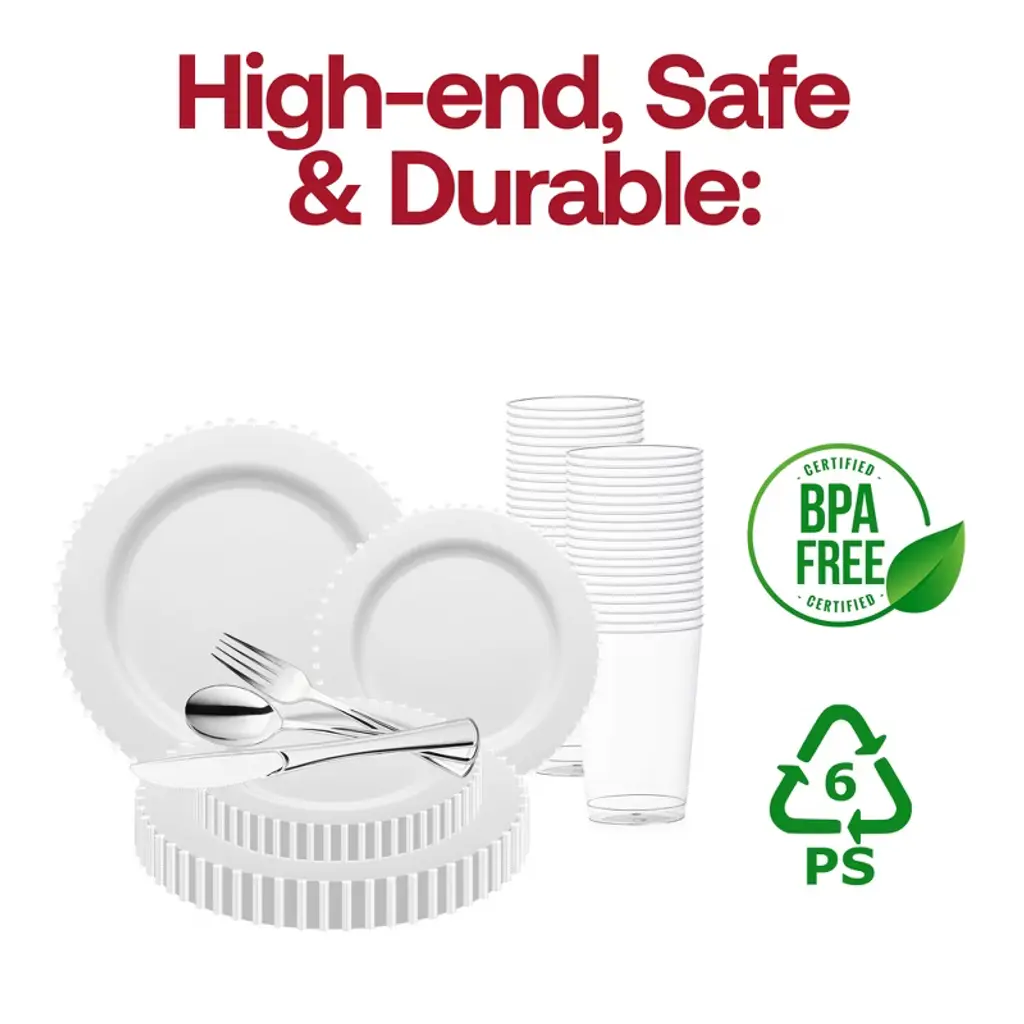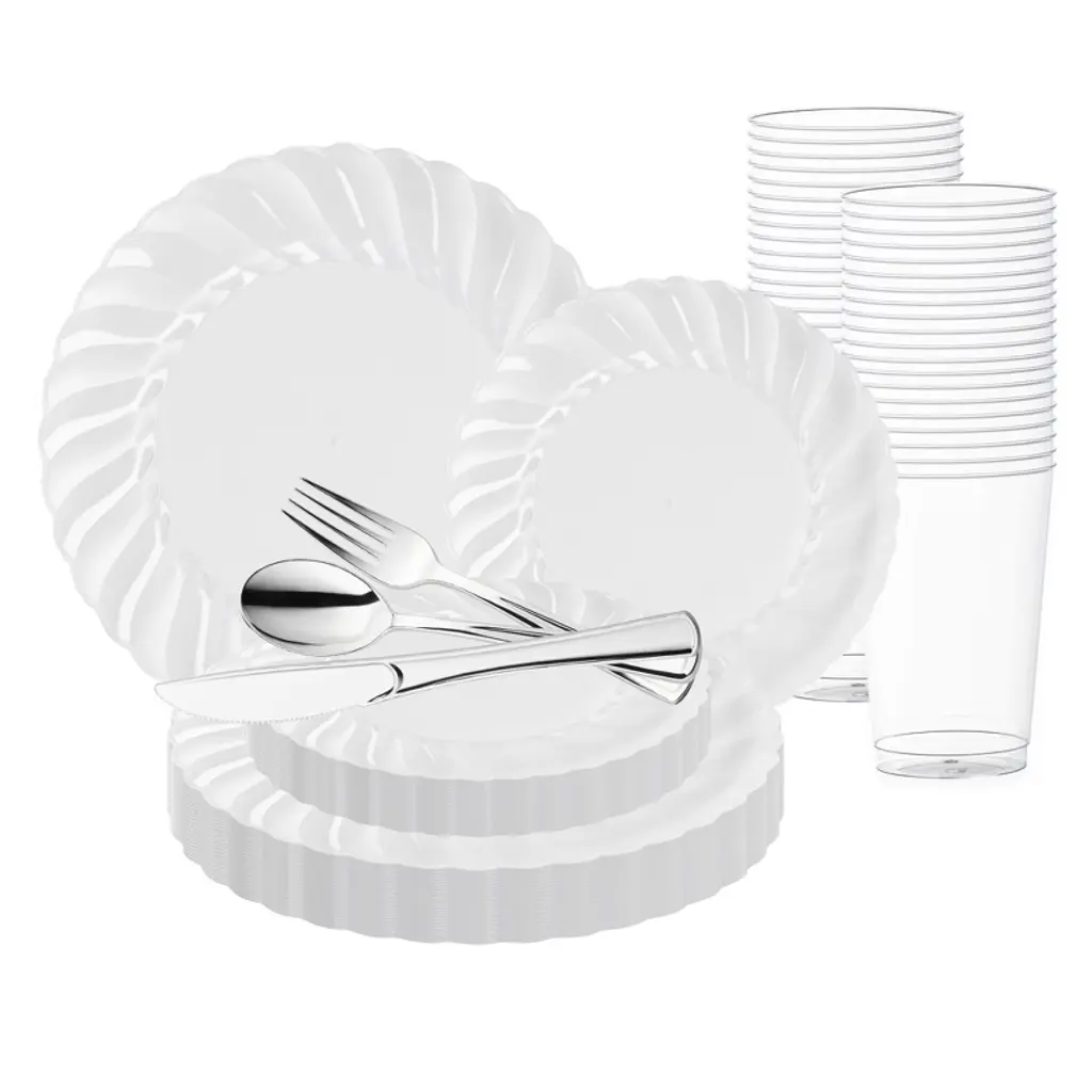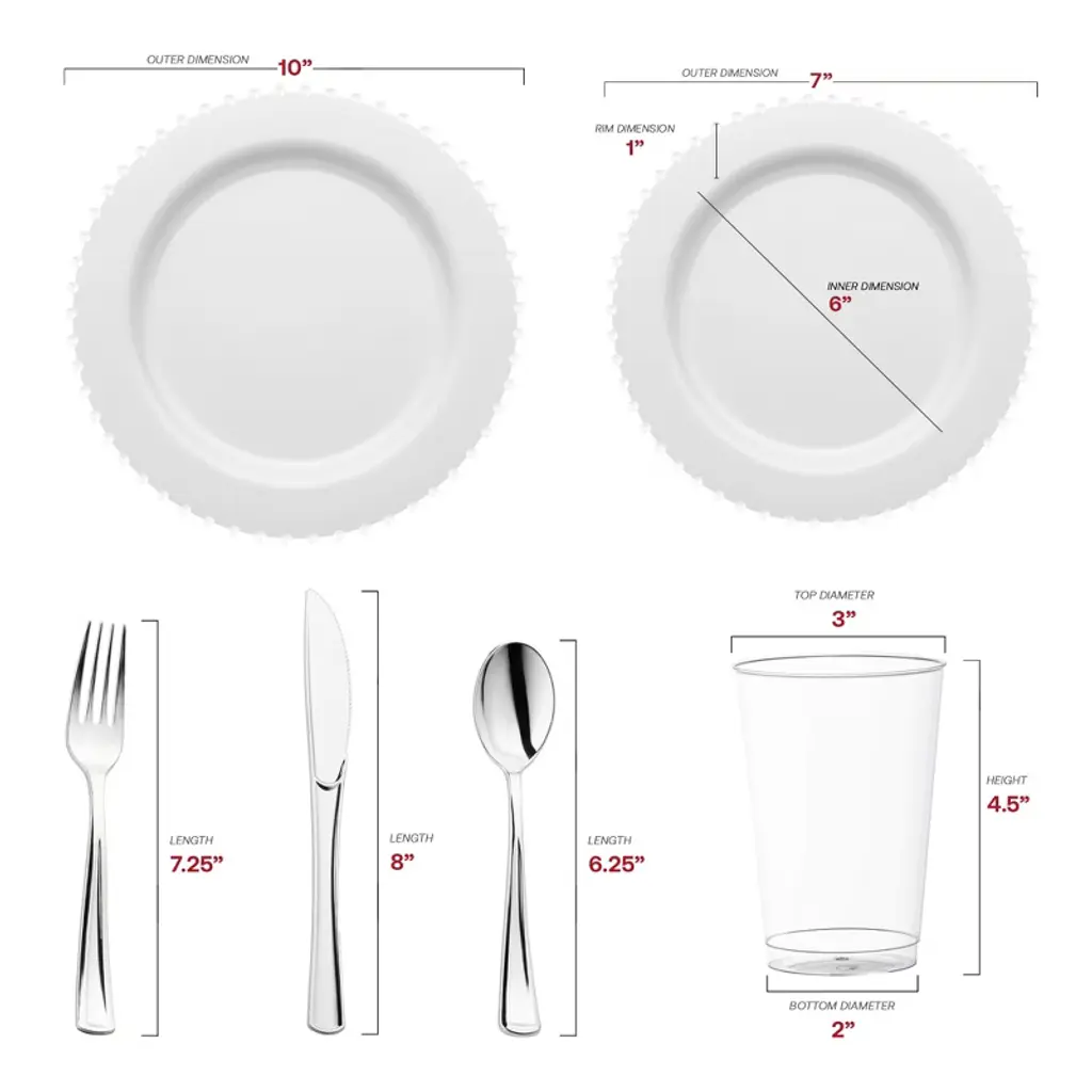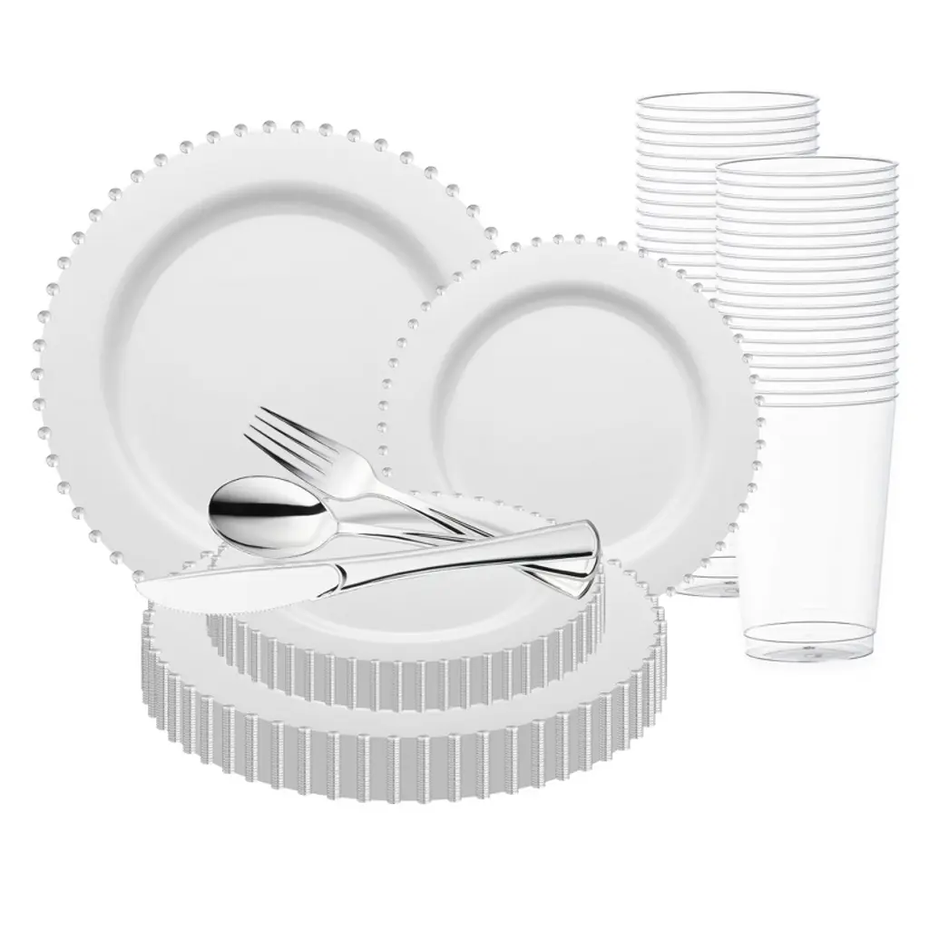 Buy our White Pearl String Disposable Wedding Value Set. Perfect for elegant celebrations. Create your dream tablescape today and enjoy free shipping.