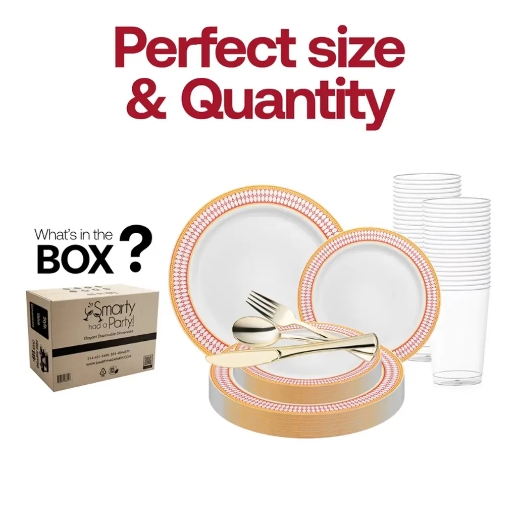 Smarty Had A Party White W/ Red And Gold Chord Rim Plastic Wedding Set - 120 Sets