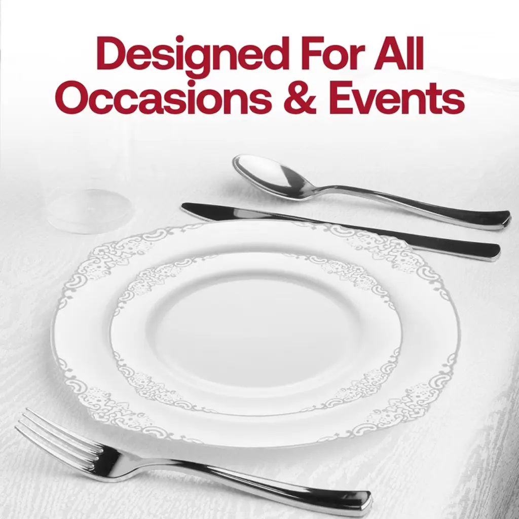 Smarty Had A Party White W/ Silver Fancy Round Plastic Wedding Set - 30 Sets