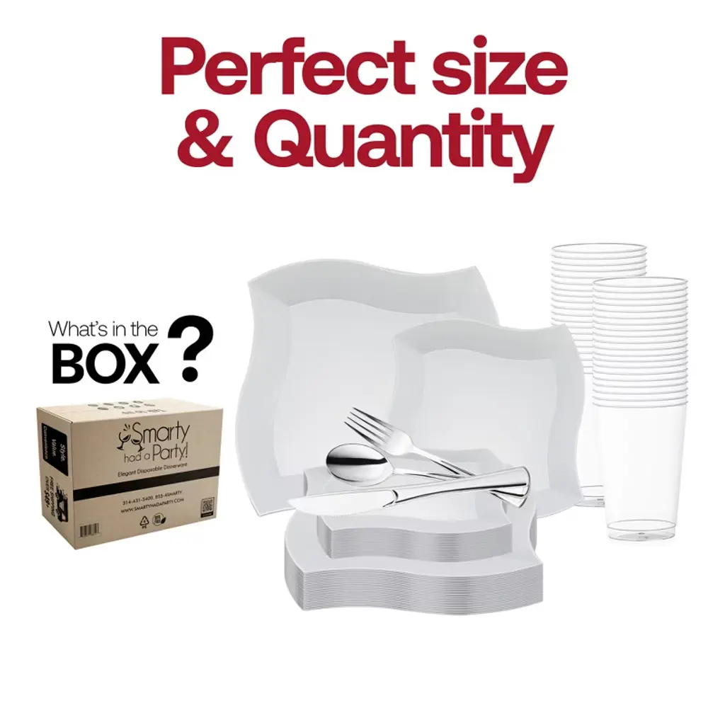 Smarty Had A Party White Wave Plastic Wedding Set - 60 Sets