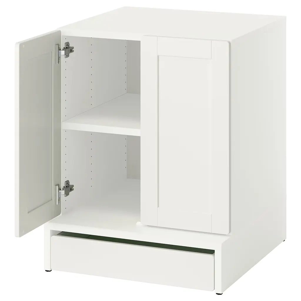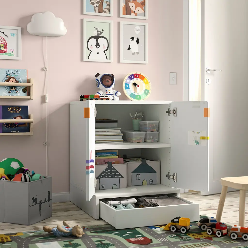 SMÅSTAD / UPPFÖRA Cabinet - white light green/with 1 shelf 23 5/8x25 5/8x29 7/8 ". A practical and dust-free way to store small and large things – or to hide the chaos that often arises when it comes to children’s things. The doors have soft-closing hinges which make them close softly and quietly.