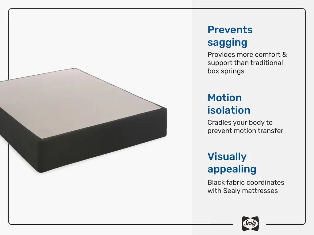 Sealy SMB SX Foundation offers more support and comfort than the traditional box spring; this foundation adsorbs motion, cradles your body and prevents mattress sagging for best nights sleep.